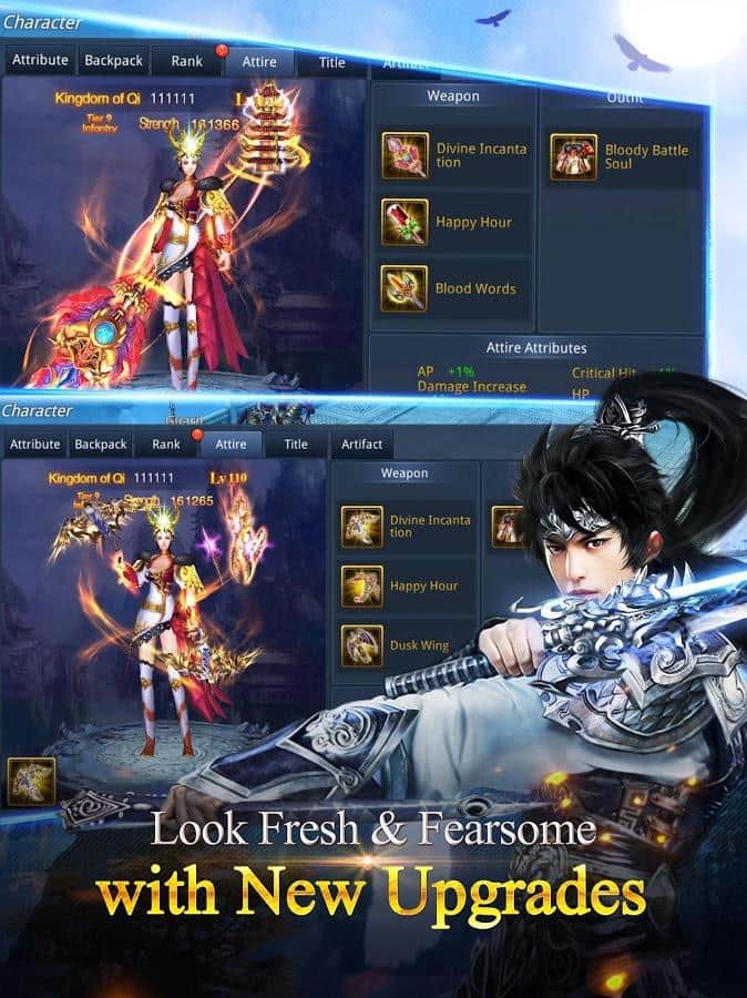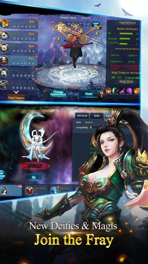 Chaos Legends – RPG for Android, where you will participate in epic war multiple kingdoms to explore a huge world. In this game you will plunge into the world of Eastern mythology, where you can enjoy great graphics and realistic special effects. In this game your main task will be to gather a huge army of soldiers and fight for power, in the world of the Kingdom capturing a variety of opponents. Enter on the warpath and don't let the enemy defeat you and take power. Choose one of the three warriors in the game, each of which has unique abilities and skills. Tame combat Pets and saddle your horse that will rush you through the vast expanses of the game. Complete various challenges to unlock access to new uncharted territories. Challenge your friends and other players and fight in real-time.
