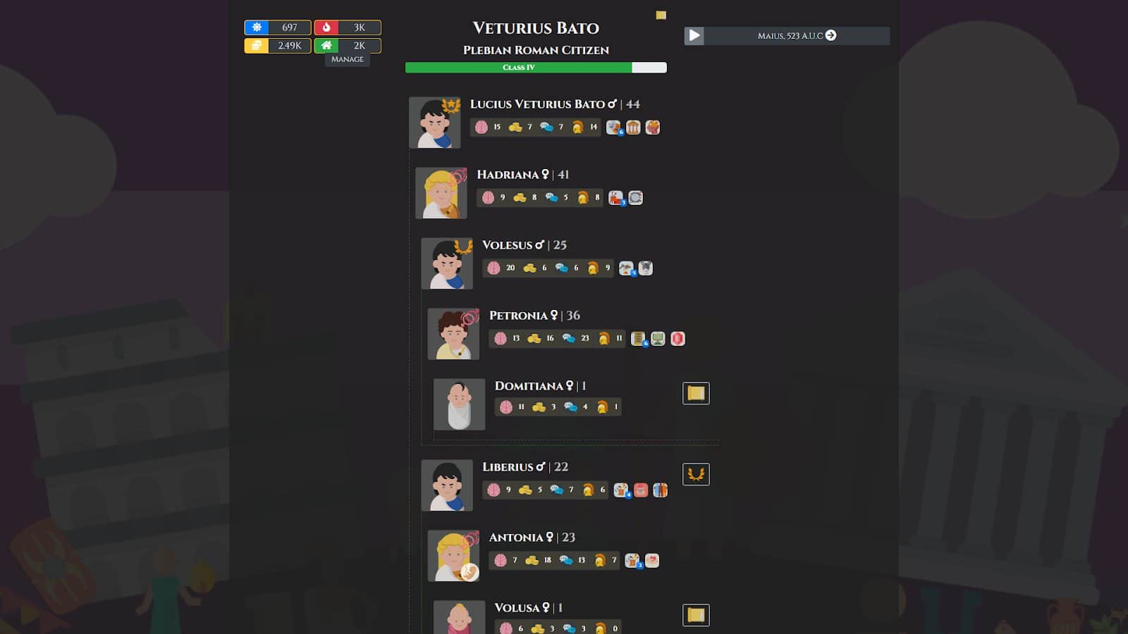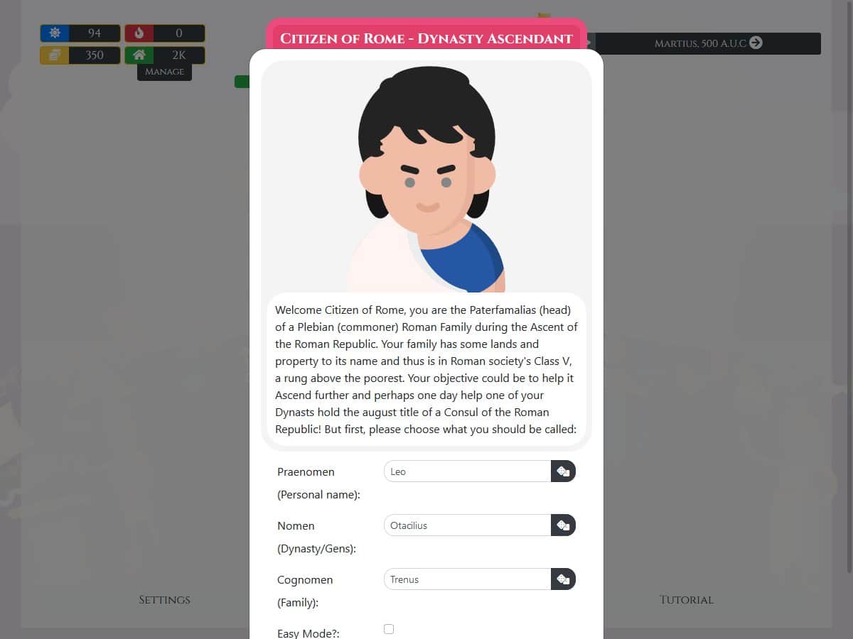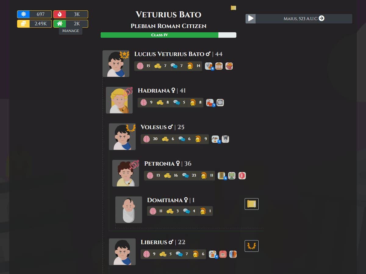 Citizen of Rome - Dynasty Ascendant - an Interesting simulator of life of a Greek family. In the game you will learn what a still life was the Greeks, their customs, style of life, they had festivals and more. If your character dies you continue games UzA his eldest son.
