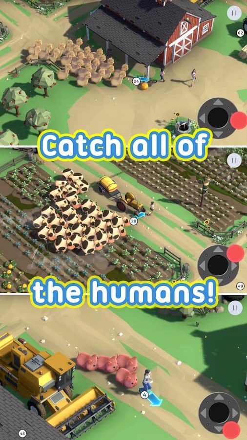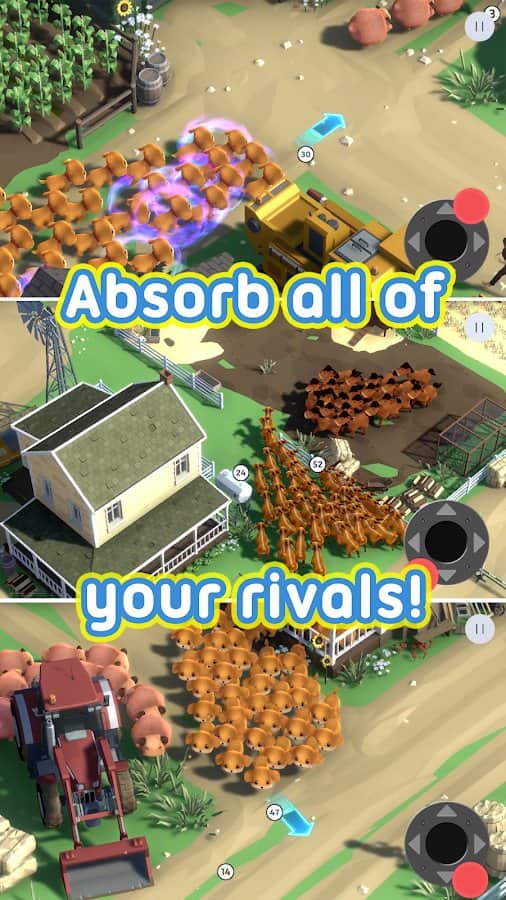 Modern and very fun game "Slash of Crowds" takes the player to the farm! The task is clear, but not simple: unite group, and then the crowd of animals of their own species and breed, passing game. The application is available in 22 species of animals such as alpacas, horses, chickens and many others! To survive you have to destroy enemies by eating them and becoming the strongest pack. All graphics done in a corner, one of the most popular types of drawing, format. Traced details of locations and paths. The music is very relaxing, so the game will bring you only pleasure!