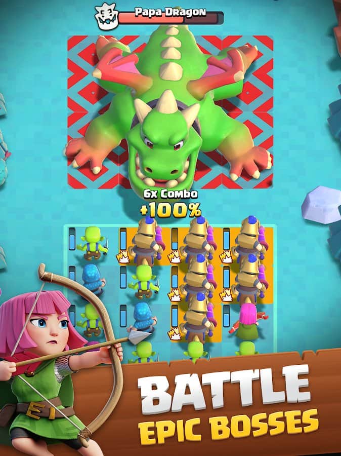 Clash Quest is a brand new mode and sensations! If earlier it was necessary to raise an army and to promote the Kingdom, or to collect cards with unique characters and go destroy the enemy tower, now starts an interesting way to different territories. Capture of the island, passing the strongest bosses in front of you. Take command of the barbarians, sorcerers, knights, archers, and other heroes and select a good spell to reinforce the attack. Collect useful resources, enter into a League best, in addition defeat enemies in a matter of minutes.