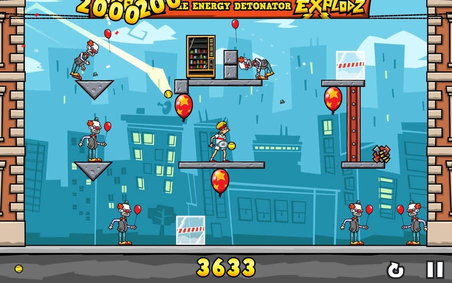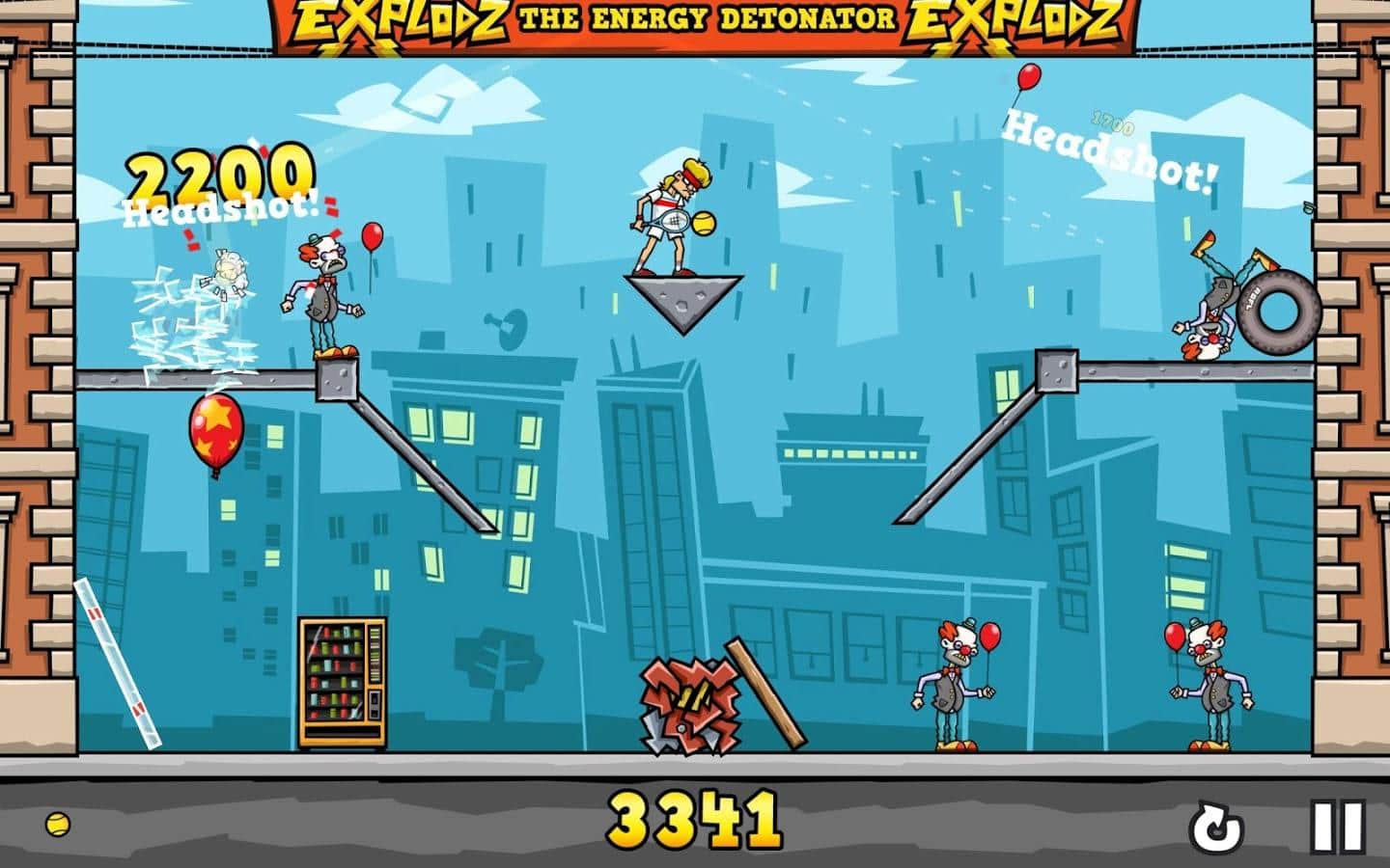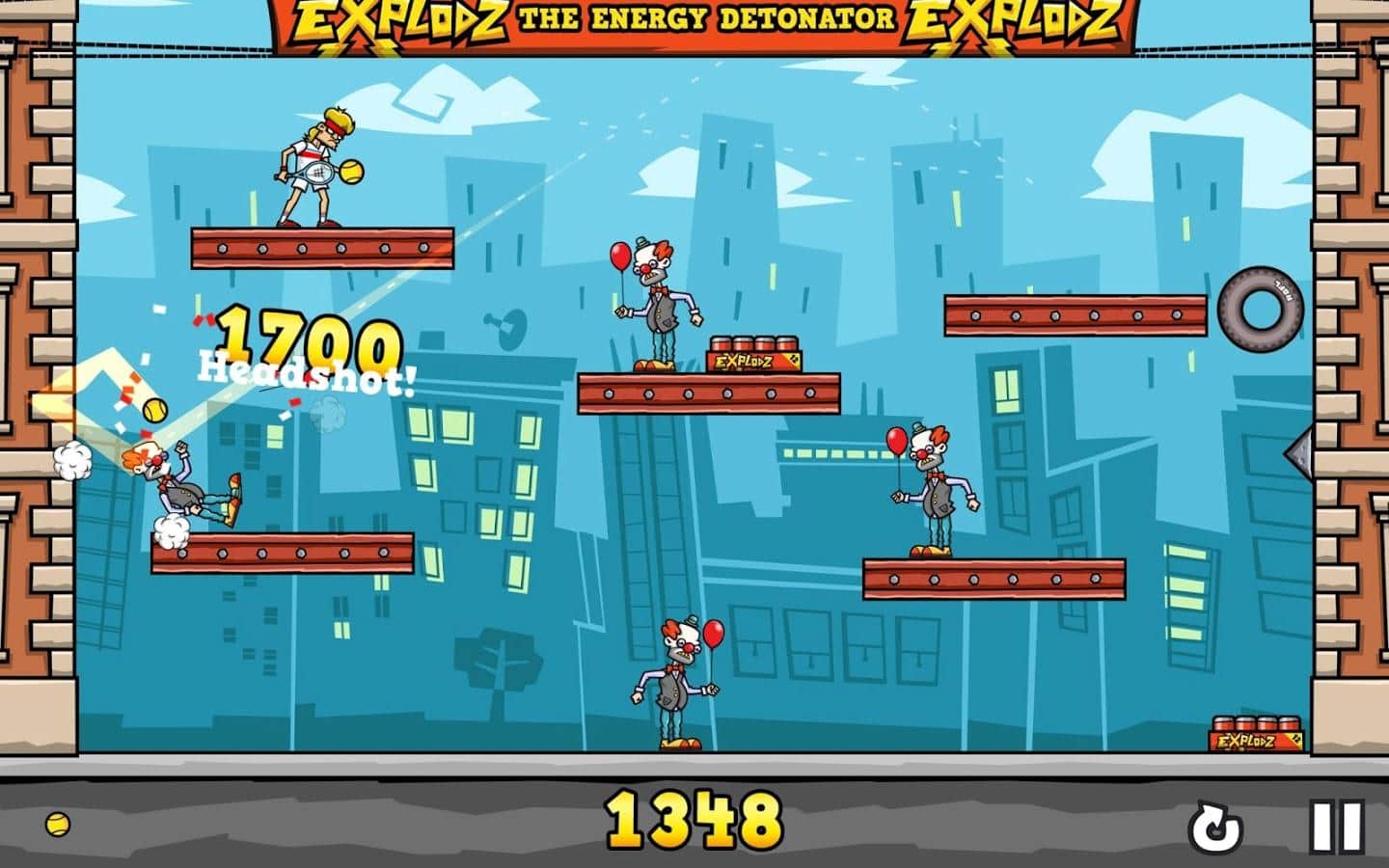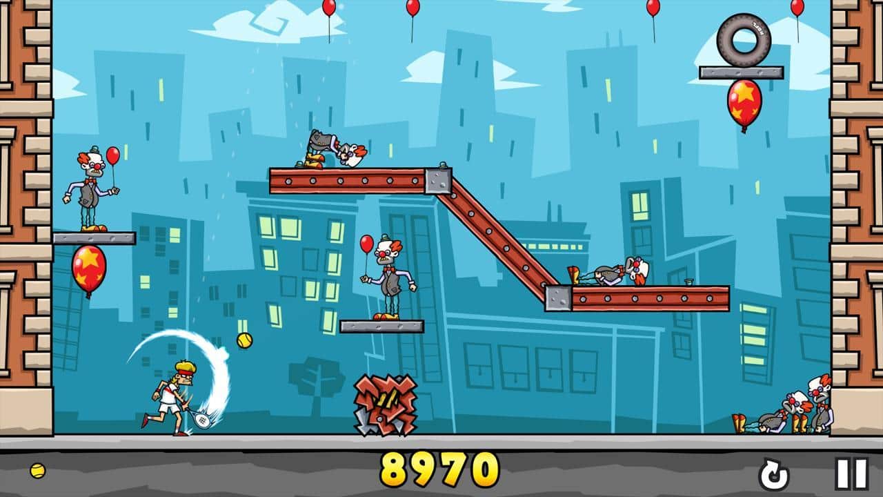 Clowns in the Face – fun game for Android where you will shoot down the clowns with the tennis balls feet. In this game you will control the main character, a tennis player who hates clowns, but they are unfortunately surrounded him from all sides and now he is not what remains how to use the paddle and ball to knock them off their feet. Zamachivalas racket and do punches in order to calculate the exact trajectory of the ball and the force of impact. Keep in mind that your ball will bounce off various surfaces, and wrap this property in their favor.