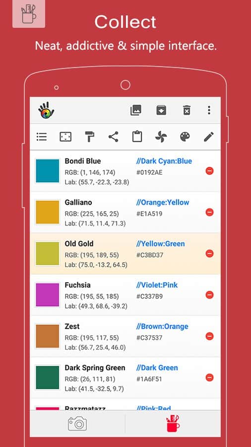 Grab Color (color detection) you Like to draw? Or to do with the help of photshop? Now you can create more realistic images with the help of this application. Although its essence is simple, it copes with the main task perfectly. It works with the camera in your smartphone, and can determine on what color you now have put the camera. Then it will determine the color more precisely and will give you the code of that color. Thus, you no longer have to choose the color, you can know the exact color of anything.