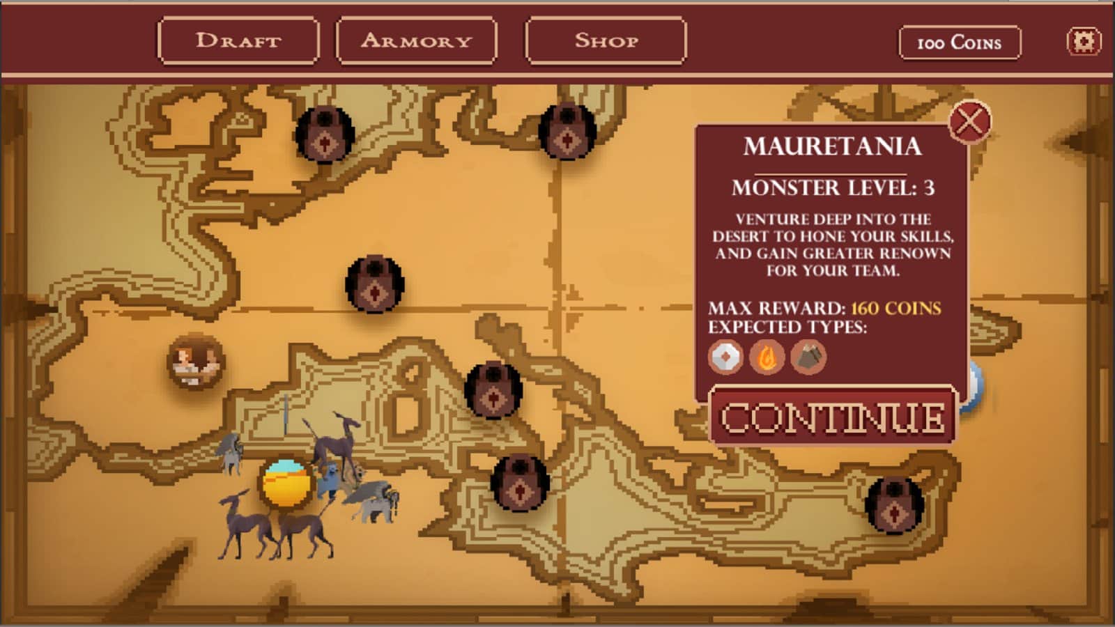 Colosseum Coach - pixel shooter in which you have to collect and take control of a squad of gladiators, the warriors you can hire from all over the world and each soldier will have unique properties and skills that can be improved and developed. Also have to fight against quite familiar warriors and against all sorts of monsters. The main gameplay will take place in the arena where you will manage gruppio gladiators. Nice pixel graphics give the picture a special atmosphere.