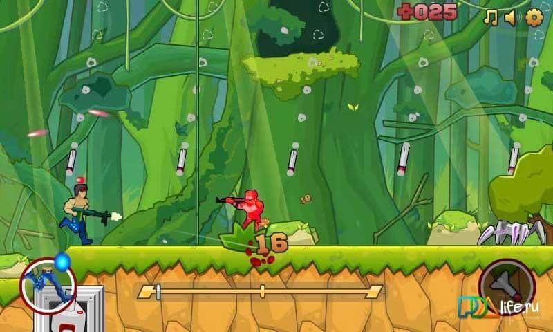 Commando Adventure Shooting – платформер на андроид, в котором вы будете помогать отважному герою пробираться через джунгли. Ваш герой решил в одиночку разобраться с огромным количеством пришельцев и врагов. Бегайте по разнообразным уровням и уничтожайте врагов с помощью фантастического оружия, а также уклоняйтесь от встречных выстрелов и препятствий. Впереди вас ждут опасные джунгли и другие не менее опасные места с многочисленными врагами, которые хотят вас уничтожить. По пути собирайте различные усиления и бонусы, которые помогут вам открыть новые уровни и оружие.