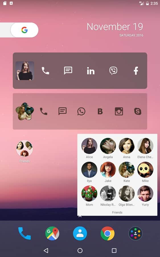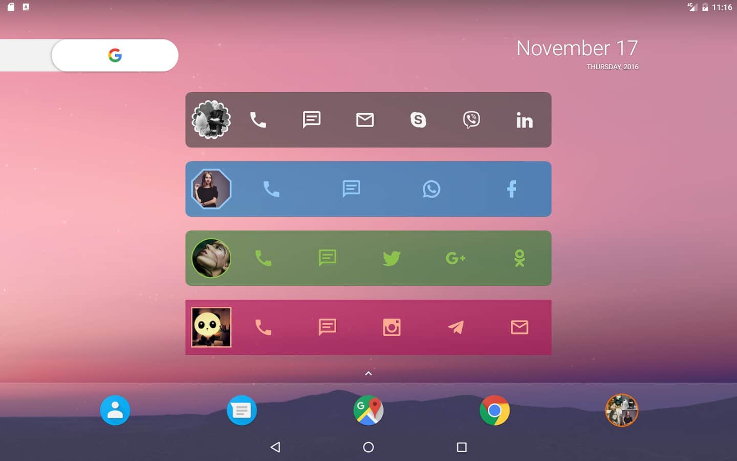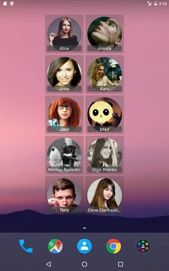 Widget contact - Manage your contacts more conveniently. You can create separate tabs on your desktop for each contact. Or make a group of contacts for quick access. Very simple but very popular application. All conveniently located right at your fingertips. Also, you can edit your contacts. Adding to each of them, unique look, and style.lt;/p>