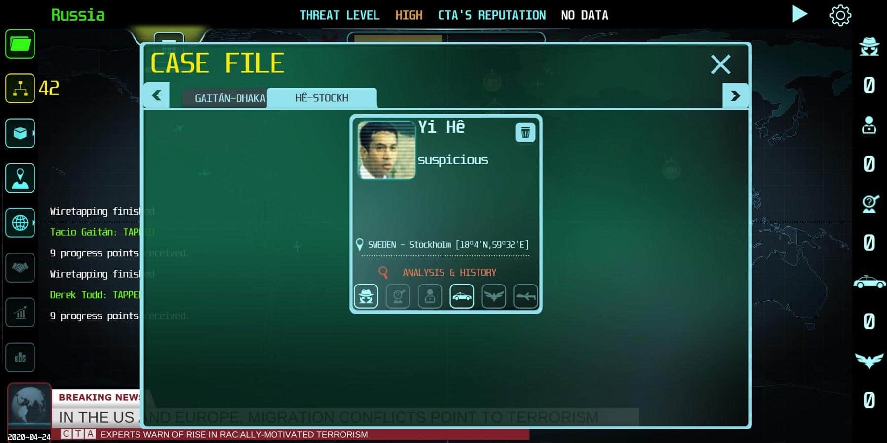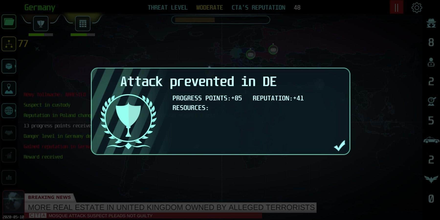 Counter Terrorist Agency is a real time strategy game with management elements and simulation. In this game you will lead the frontline organization in the fight against international terrorism and to prevent terrorist attacks around the world. Find evidence using modern methods of exploration, listen to calls, read secret correspondence, interrogate suspects, prevent threats and defeat terrorist organizations. You, as the head of the Agency, sometimes have to make difficult decisions. Will you be able to make a sacrifice to prevent a major terrorist attack? Do not allow yourself to be between a rock and a hard place.