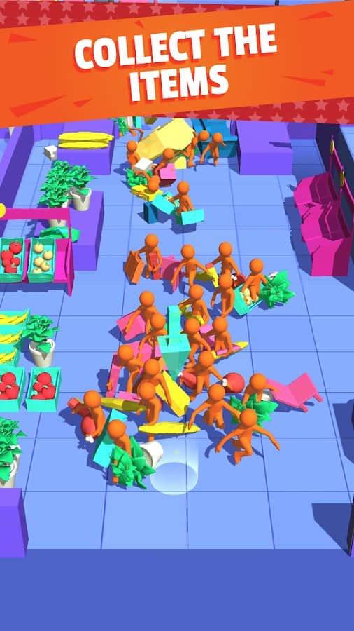 Crazy Shopping – a fascinating game on Android, crazy and funny physics and technology of free fall. In this game you will control the customers, and wreak havoc and destruction in the store. Your main task in the game will improve your team and collect as many items as possible. Collect items and throw them in a special zone thereby collecting points and getting more money. This game will delay you with its fun and unique gameplay in which you will be able to play in any free time. Unlock new objects and shops.