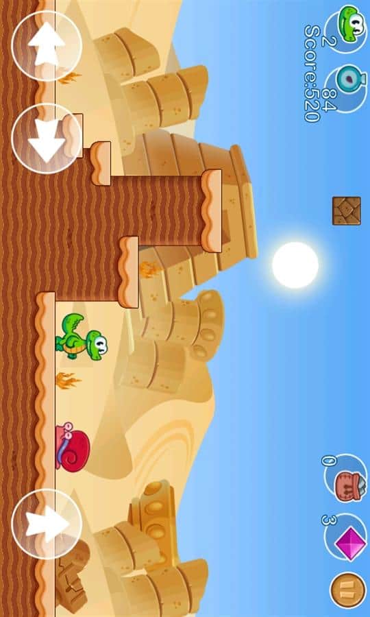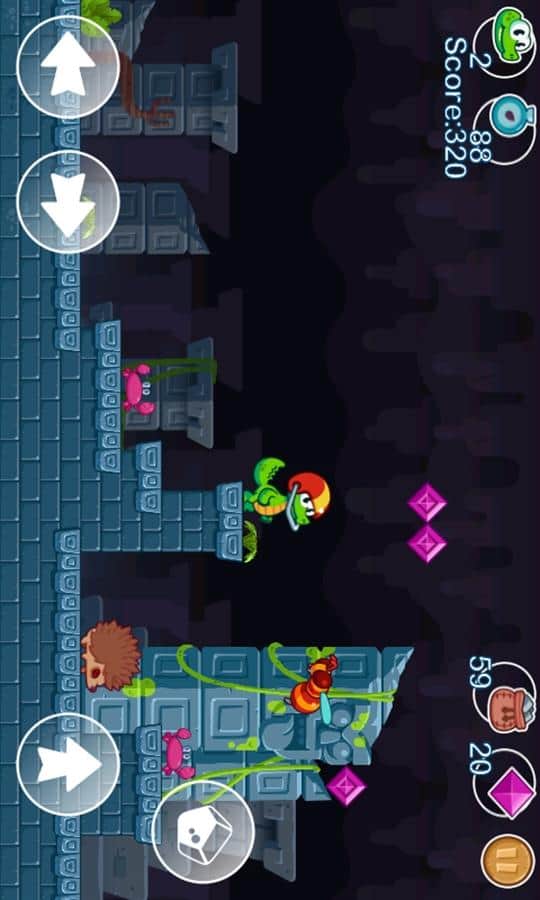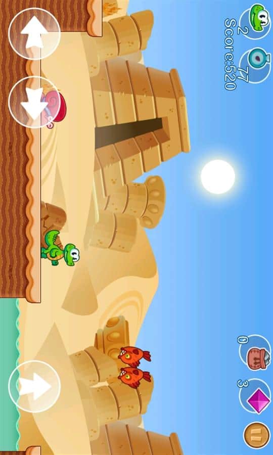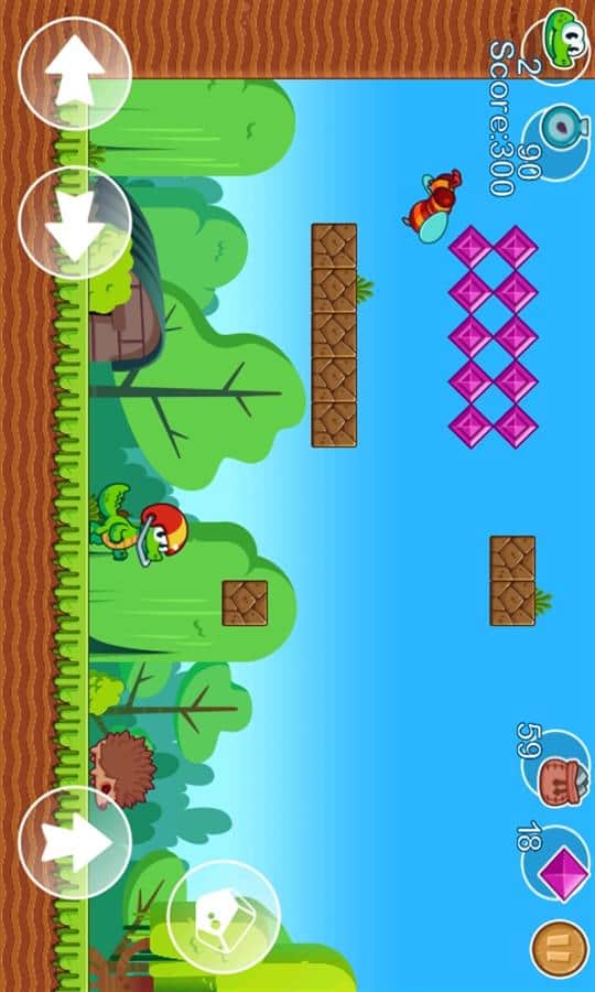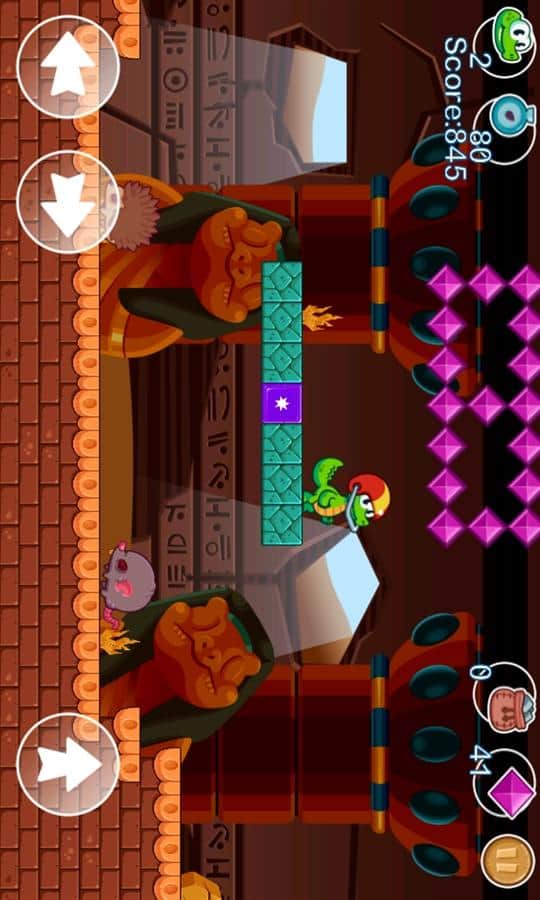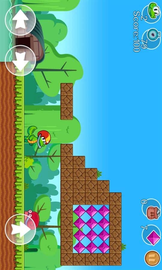 Crocs World is a platformer where you will control a cheerful crocodile. Run, jump and Dodge enemies and do not forget to collect the gems and bonuses in the form of a helmet. For every 100 collected diamonds you will get extra lives. This game will please you with great bright graphics and 4 different themes, as well as 60 fun levels and numerous and various enemies.