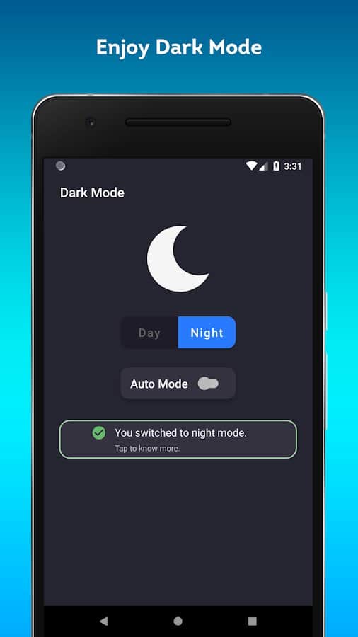 Dark Mode - Protect your own eyes from poor lighting and harmful rays that radiate from the phone by setting the dark mode on the entire device. There are many advantages to using the dark mode: saving battery, reducing eye strain, minimizing blue light and flickering, etc. With a dark background, white text will be easier and better to read, so you can easily navigate between the two modes in just one click. Constantly use the app and you will see a noticeable difference for yourself.