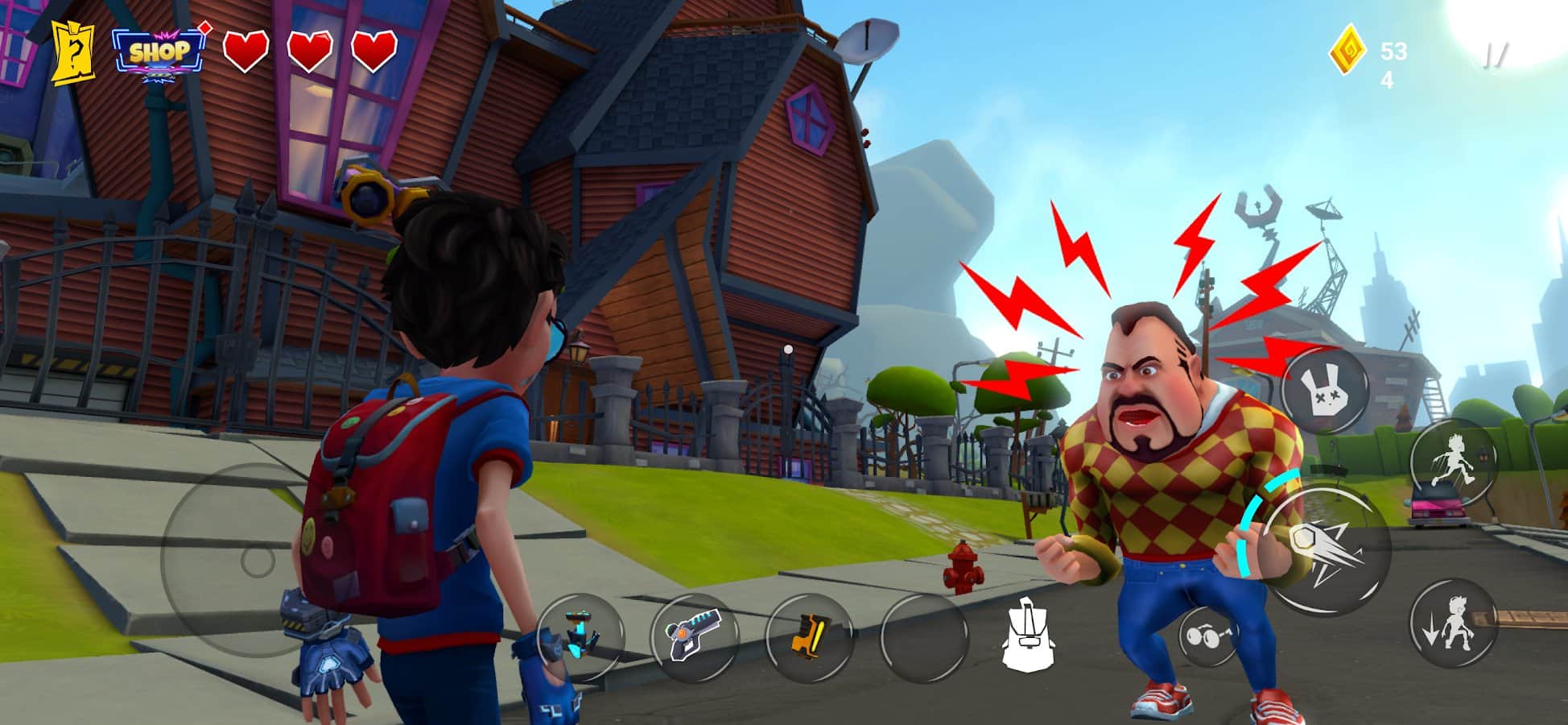 Dark Riddle 3 - Strange Hill - in the game, we once again have to solve puzzles and uncover the secrets of a suspicious neighbor living in the heart of strange cities. But this time the neighbor won't be alone - his brother and sister will come to help, which will easily give them an early advantage in their plans to conquer the world. So it's time to explore the city in search of useful and unique items, meet non-playable characters, such as a mysterious scientist or a seller of exoplanetary devices, and also try to break into the house to solve the mystery of the neighbor's family. Key features of Dark Riddle 3: Strange Hill: Captivating story for each character and item; Abnormal creatures that can be both friends and enemies; Plenty of puzzles, traps, locks, and obstacles in the neighbor's house; A secret machine that will reveal all the secrets to us.