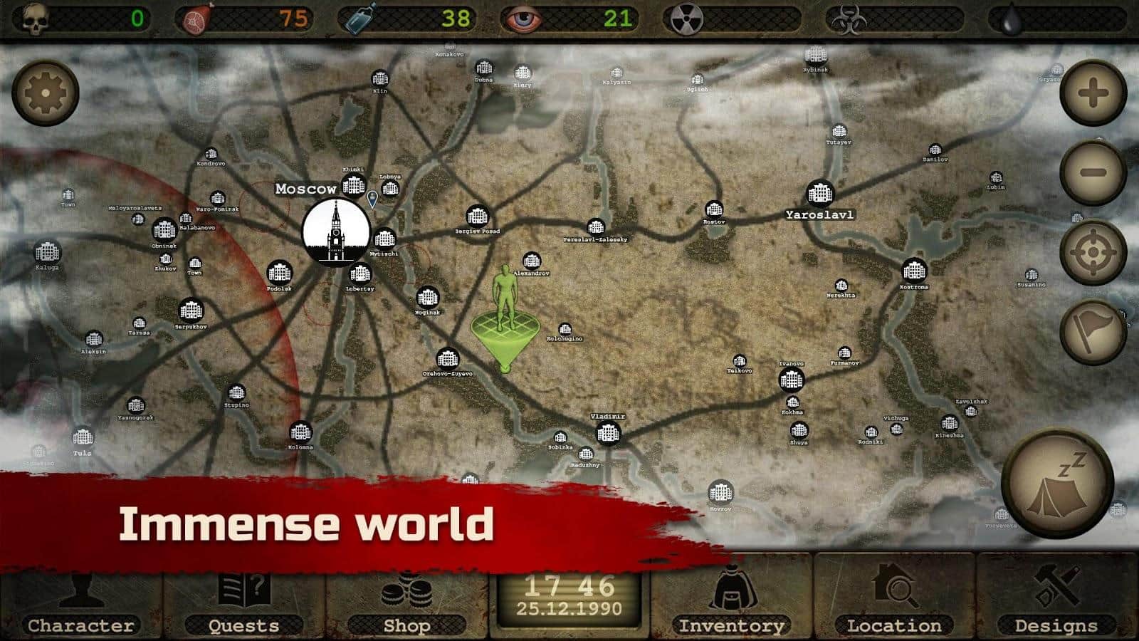watch the – turn-based game where you survive in a world after a nuclear war. In this game you will be in the 80-ies, where after a nuclear war, the world turned into a lifeless wasteland, which is inhabited by horrible monsters and blood-thirsty foes. In this game your main goal will be to move the whole country and save his family. They may already be dead and the radiation threat and the virus has gotten to them. Explore the destroyed world and survive in an extreme environment where you will struggle with thirst, hunger, fatigue, illness and injury. Find the items you need and create weapons and equipment, and get a parcel with supplies.