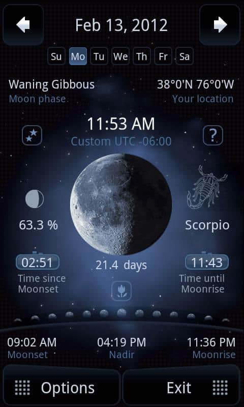 The app calculates your location using GPS and provide the most accurate information for your area. In addition, Deluxe Moon can work completely offline, without the Internet! So, your mobile Navigator on the moon is always ready to help you to choose the time for haircuts, to calculate the best time of the transactions, meetings with your loved one, buying cars, etc.