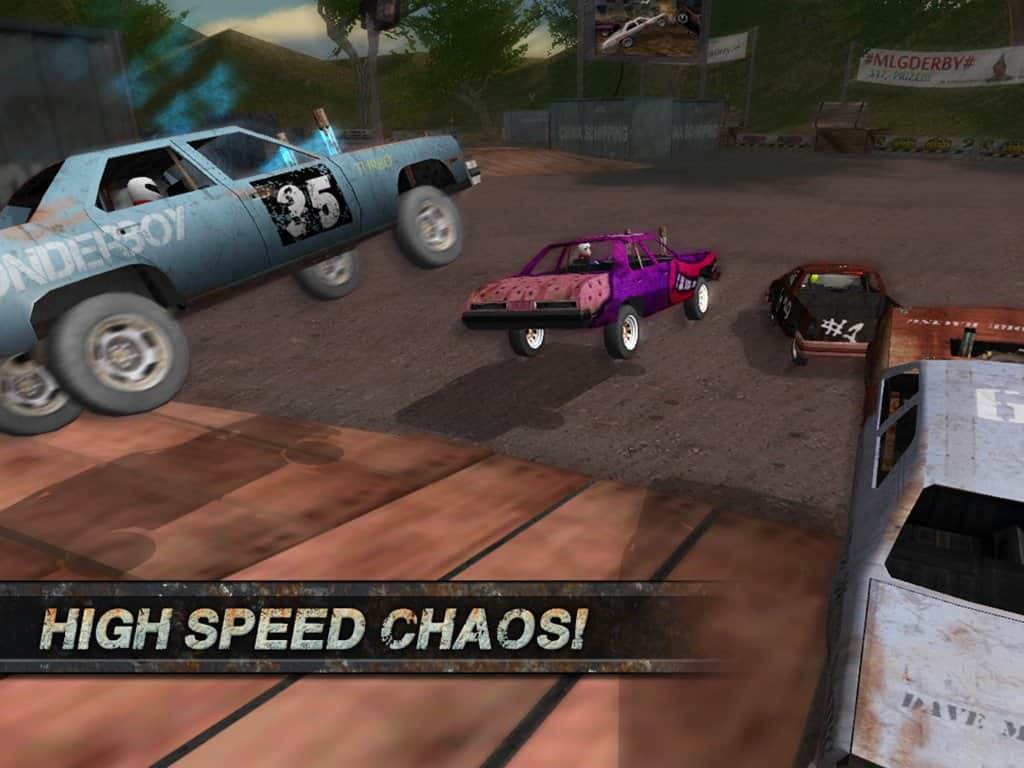 Demolition Derby: Crash Racing – игра в которой вы будете устраивать сумасшедшие гонки на арене. Вашей задачей в этой игре будет выбрать себе автомобиль из трех оригинальных американских автомобилей и начать сумасшедшие гонки. Управляйте своим автомобилем и гоняйте по замкнутому пространству, делая наезды на другие автомобили и нанося им непоправимые разрушения. На заработанные баллы приобретайте новые автомобили или улучшайте свои, делая их более агрессивными и скоростными. Игра порадует вас реалистичными разрушениями и возможностью смены стиля контроля за автомобилем. Попробуйте продержаться как можно дольше в игре и остаться последним на арене.
