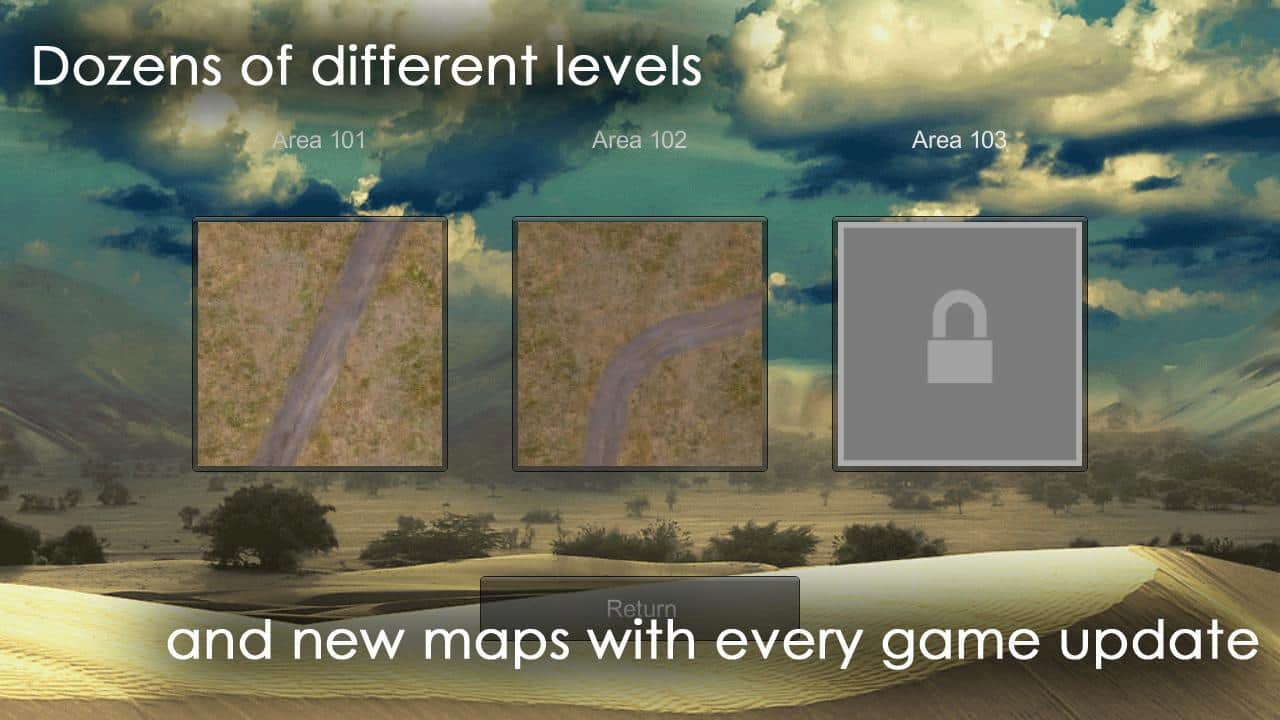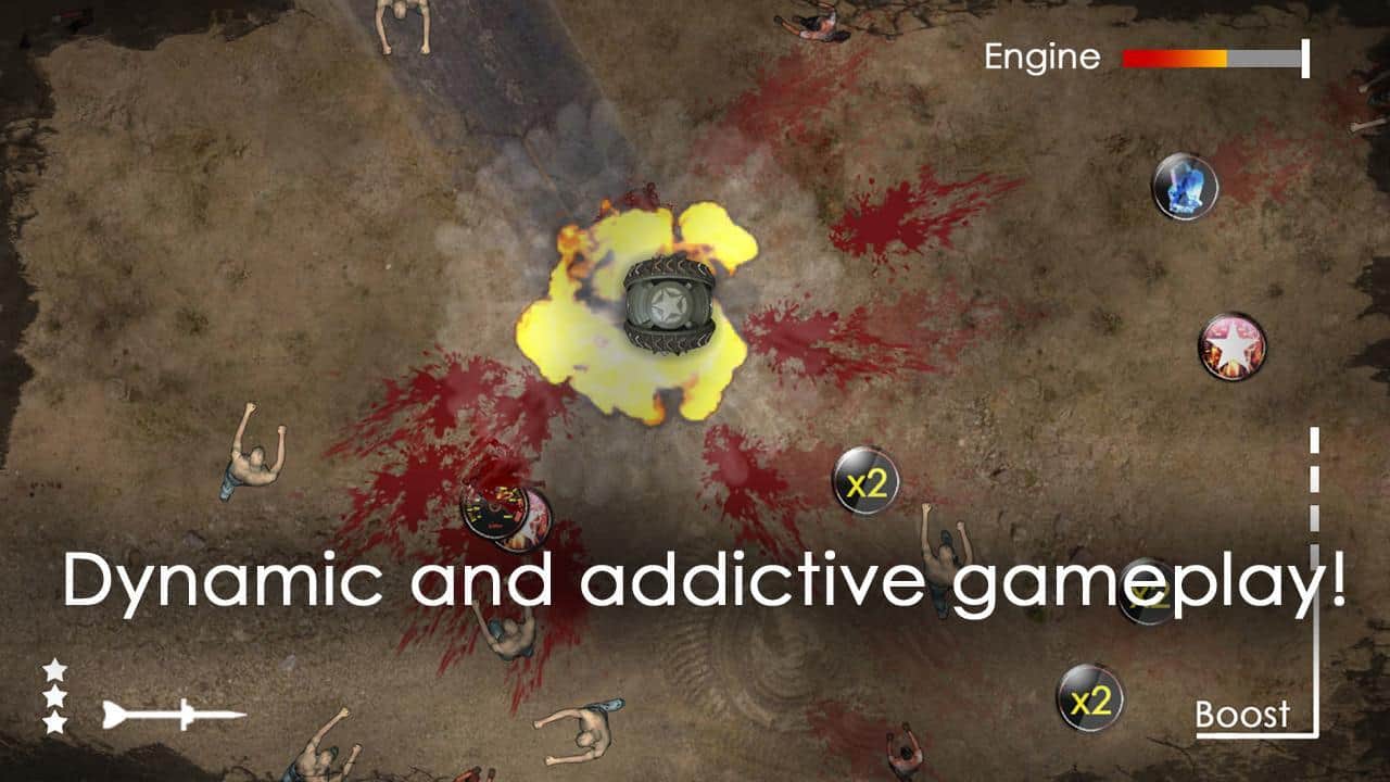 Desert 51 ride on the futuristic experimental tank, which has acquired tons of armor, and destroy zombies. Features: