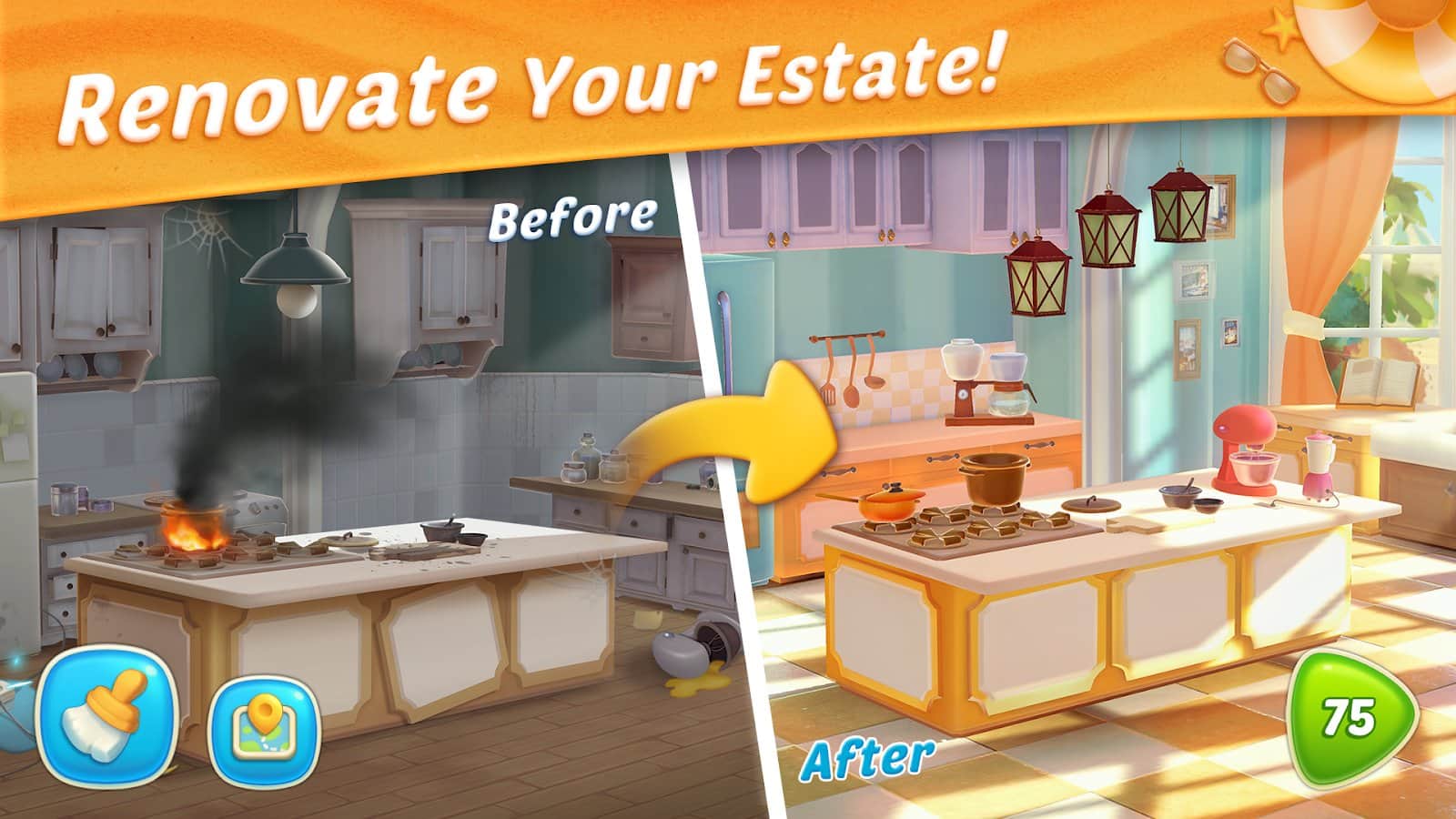 Design Island – an entertaining game three in a row on Android, where you are transported on a fabulous island. This island once shone its superiority and beautiful villas, but now it has lost its former glory. Your task will be to go to the island and repaired his Villa comprising three or more objects in a row. Discover new room, house, garden and furniture and create the Villa of your dreams. Use your design skills and make your mansion is world famous. Meet new Sims game and its neighbors and carry out various tasks and assignments. Make cute Pets that will join your journey.