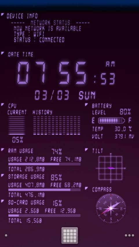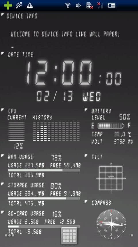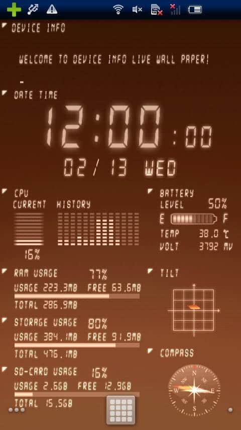 Device Info Live WallPaper is a nice live Wallpaper for your Android device. Download and install Wallpaper on the screen of your smartphone/tablet, you will be given full information about: