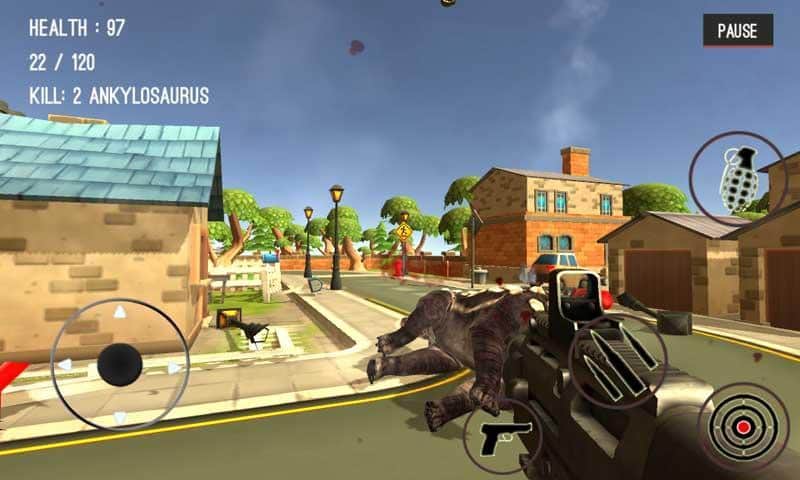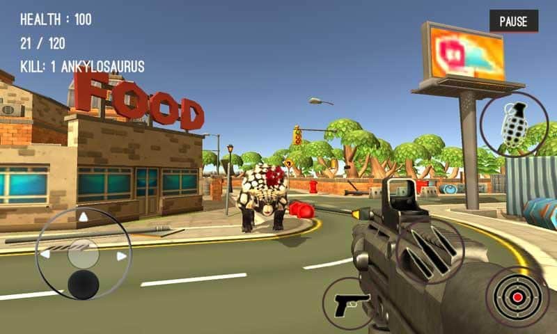 Dinosaur Hunter Dino City 2017 – addictive game for Android where you will hunt monsters. Take up arms and go out into the streets of the city, which roam the prehistoric dinosaurs. In this game you will meet with a variety of dinosaur species, ranging from carnivorous and herbivorous ending, but be very careful because even a harmless herbivorous dinosaur capable to cause you fatal injury. Show all your skills great shooting and a good response in time to destroy the dinosaur not letting him come close to you. At your disposal is a large Arsenal of weapons and many unique levels.
