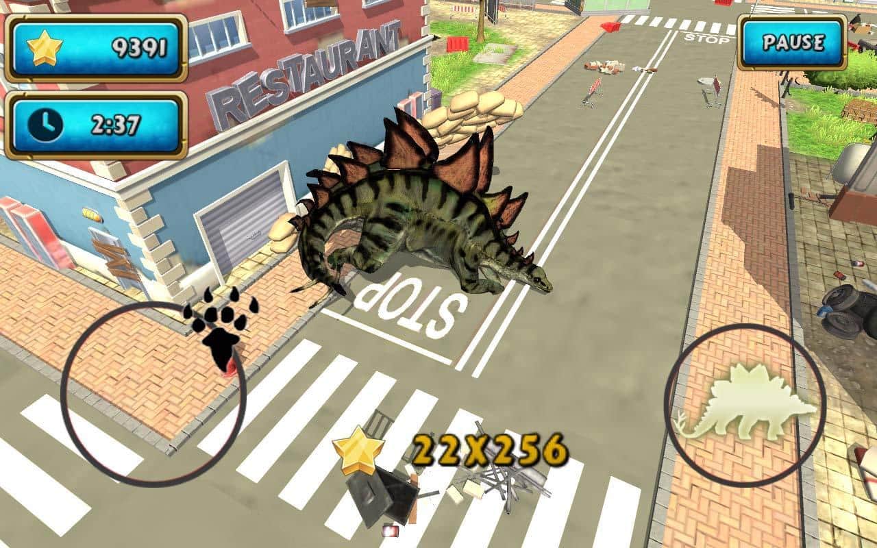 Dinosaur Dino Simulator 2 – a game on Android where you will operate a huge prehistoric dinosaur. In this game you will take control of a dinosaur and will travel to a modern megapolis, scaring people and destroying everything in its path. Choose from 35 dinosaur, such as Tyrannosaurus, stegosaurus, Triceratops and others, your and go towards adventure. Use the outstanding power of the dinosaur to be uprooted with the root of the trees, out of the way of cars and break the pillars. Play this game and enjoy realistic physics, a huge city and 6 unique levels.