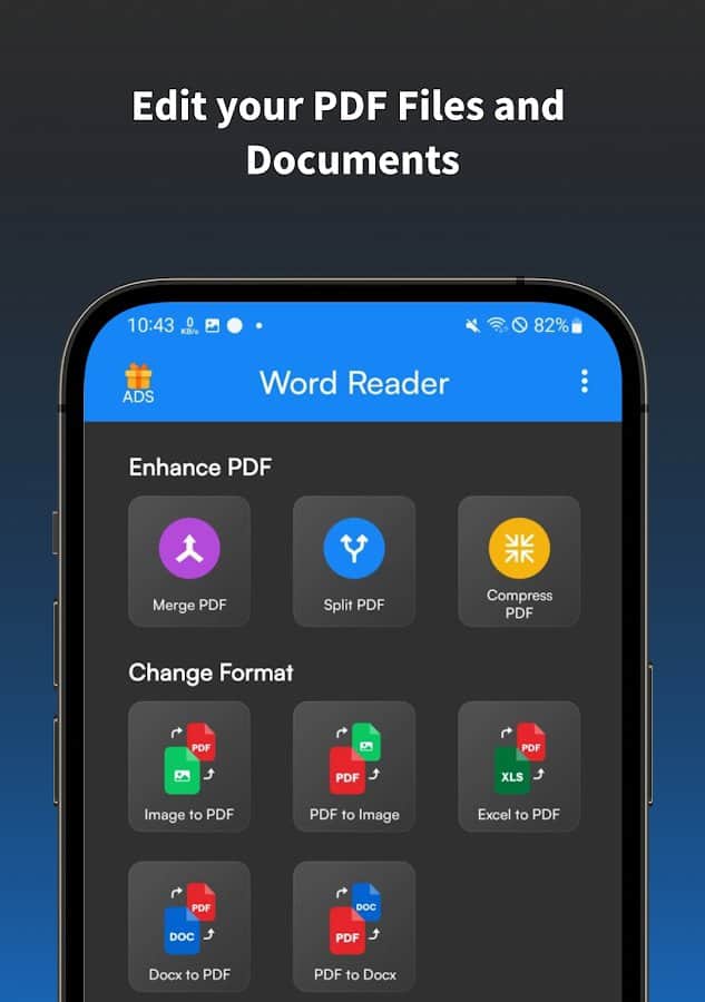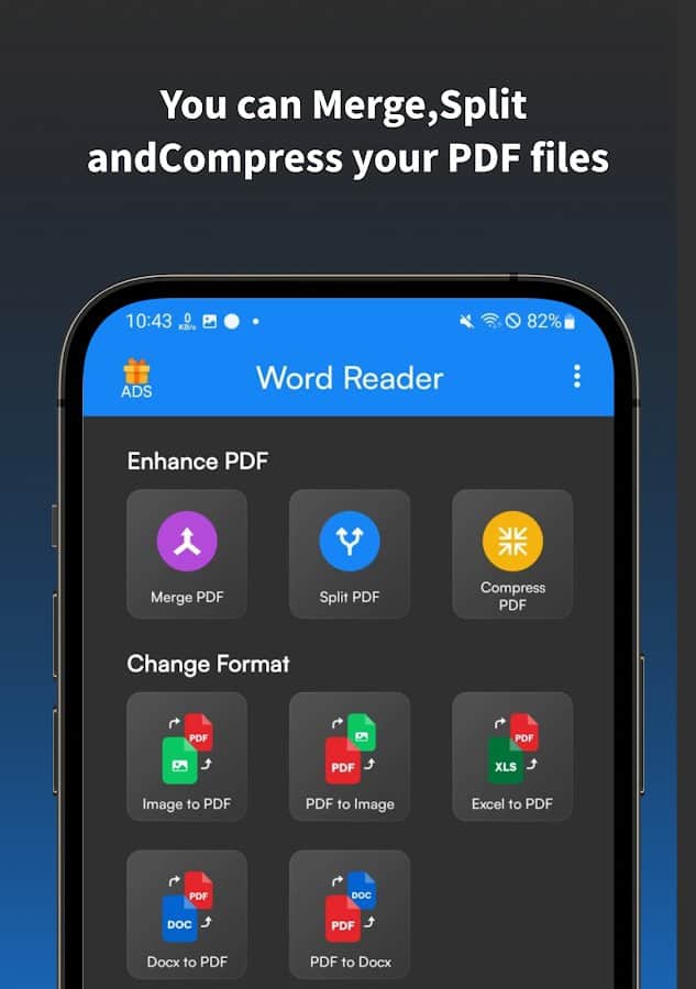 Forget about problems with opening documents on your smartphone. Docx Reader Word Office viewer is a universal application that supports all popular file formats, including docx, doc, xlsx, pptx, txt, and PDF.