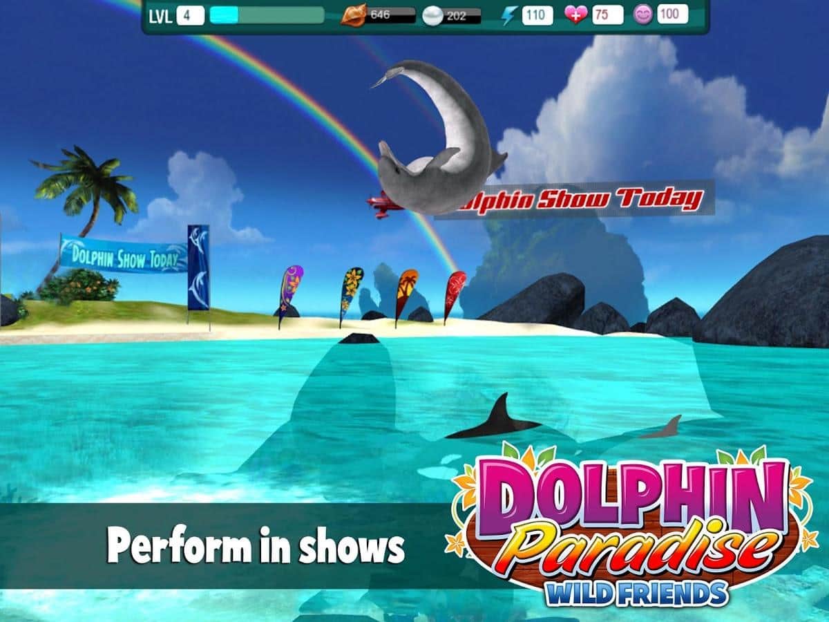Dolphin Paradise: Wild Friends - a game on Android in which you have to show all pet Dolphin. You have to care for him, good food and to teach all sorts of tricks in order to participate in contests. And also the blue lagoon clean from jellyfish, in which the lives of the Dolphin, thereby earning bonuses in the form of shells and pearls. Which you can spend on buying props for the contest, treats or purchase of another Dolphin.