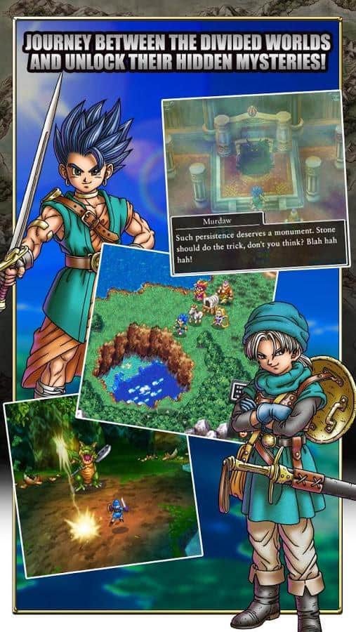 DRAGON QUEST VI - the Continuation of all the famous series of games in the genre of RPG DRAGON QUEST from the creators of Square Enix now available for Android. Find yourself in epic battles involving two parallel worlds. The game's story begins after a young man from a small village called weaver meets up with the spirit of the mountains. And the spirit tells him that only he can save the world from the hot dark. So the guy goes to a dangerous adventure, leaving his home and little sister. Help the main hero to discover the truth about his world and about the mysterious phantom realm of darkness that lies beneath ...