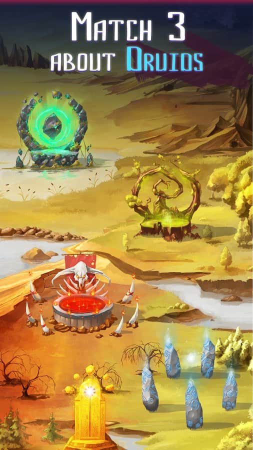 Druids: Mystery of the Stones the game three in a row on Android, where you have to solve the mystery of the druids. In this game you will find yourself in a fantastic world where they will meet many mythical creatures and orcs, elves and other fictional characters. Collect colorful gems into rows and explore the ancient altar of the druids, who will dig for you all the veil of secrecy. Use all your skills and powers of observation to create as long rows of stones and use magic to blow them up. Use spells and potions to cope with the challenging levels that await you ahead. Complete exciting mini-games and collect points.