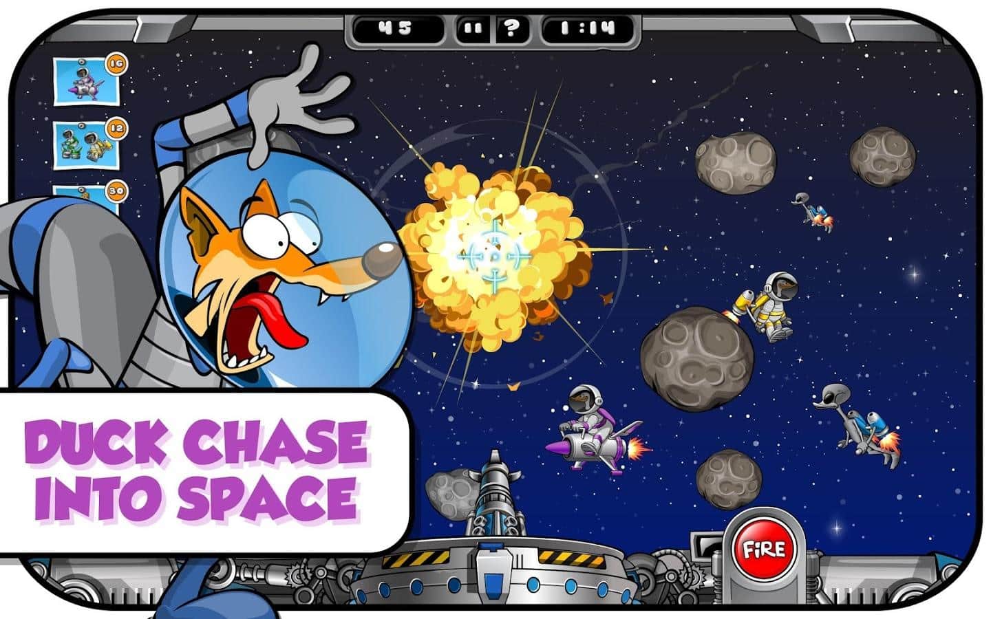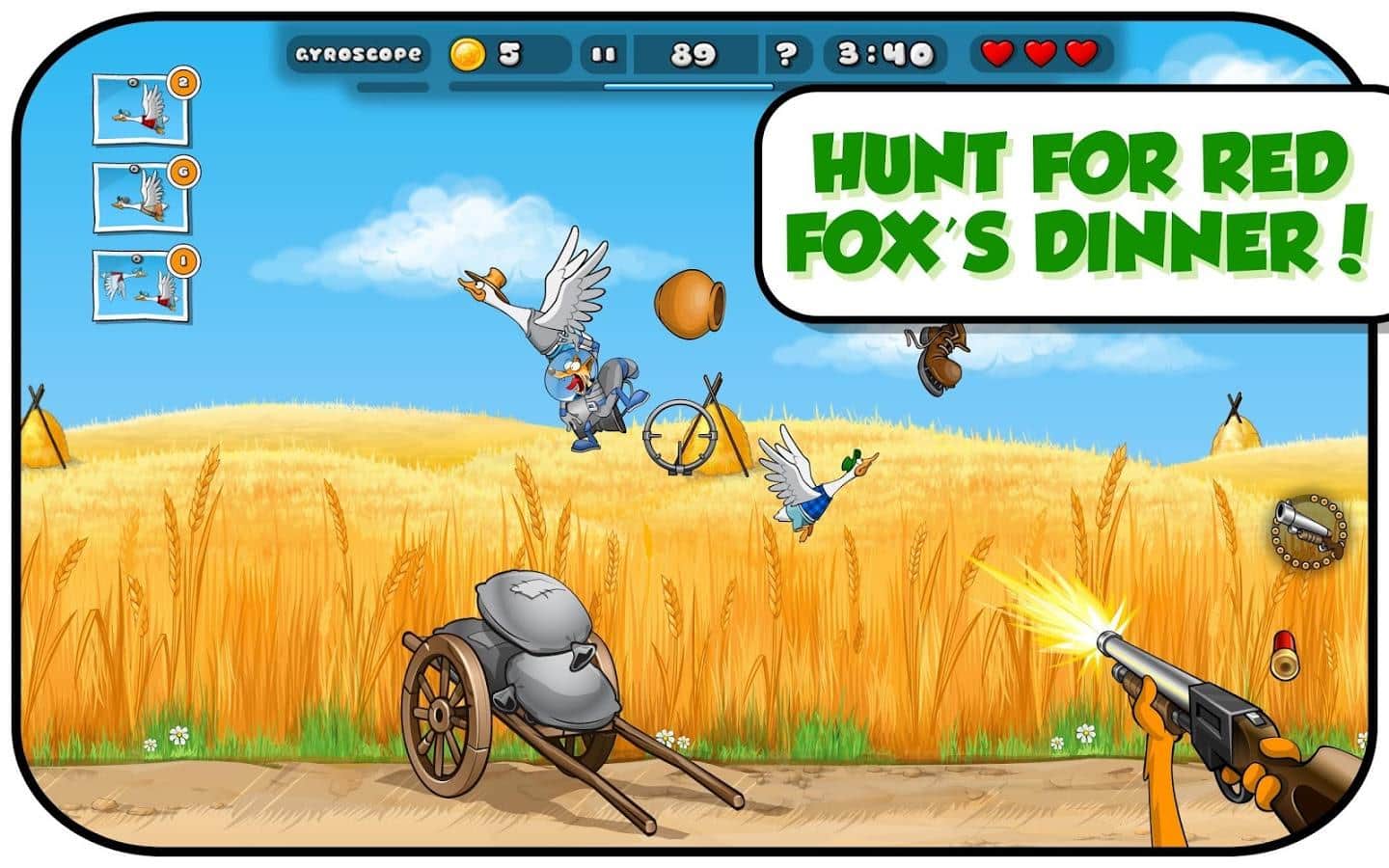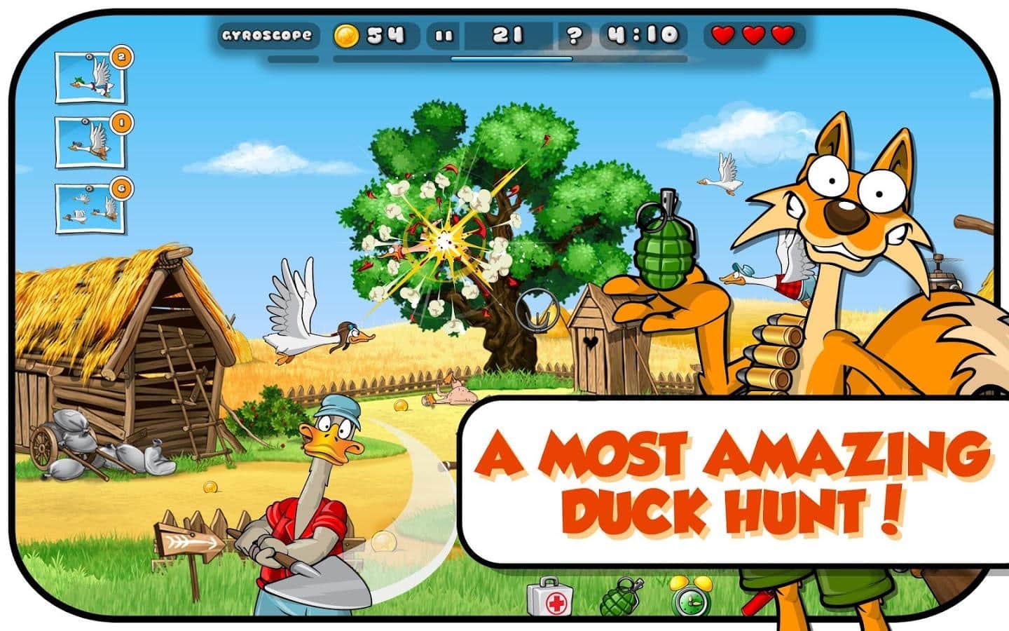 Duck Destroyer - When you are very hungry, you take the shotgun and want to get something for dinner. Test your ability to shoot accurately, shoot down from the sky flocks of ducks. Slingshots, machine guns, dynamite - all is in your Arsenal to fend for themselves. Follow the journey of a funny Fox in 50 levels and more than 150 missions. Travel around the world, visit the Arctic, fantasize in space with funny weapons. Cartoon graphics and sound will cheer you up.