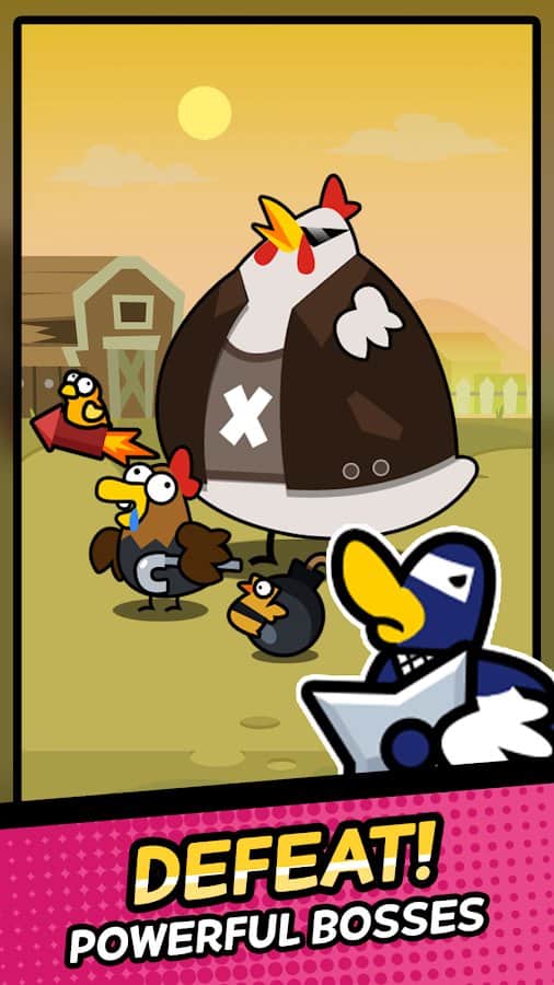 Protect your platypus farm from the furious attack of insane chickens by uniting in a torturous battle with funny, humorous duck heroes! Together with your new types of rockets and duck companions, you are ready for anything. Cross rockets to create more powerful weapons. Combine identical rockets to obtain more specialized versions capable of repelling attacks. Develop defense rockets to protect your farm from chickens.