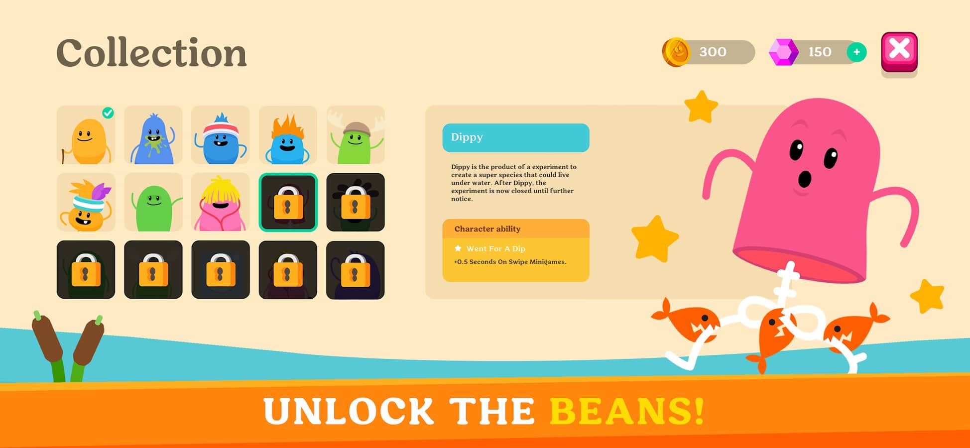Dumb Ways to Die 4 - gives you even more fun: exciting mini-games, new places to explore, all your favorite Beans that need to be saved, and lots of surprises! Compete with friends and family to find out who will last the longest and become the champion of Dumb Ways to Die! Collect coins, buy upgrades, unlock new places and get prizes while trying to survive! Will you have enough Beans? Time to play: Try to survive by avoiding traps and dangers. Tap, swipe, draw and do much more in new mini-games with your favorite Beans!
