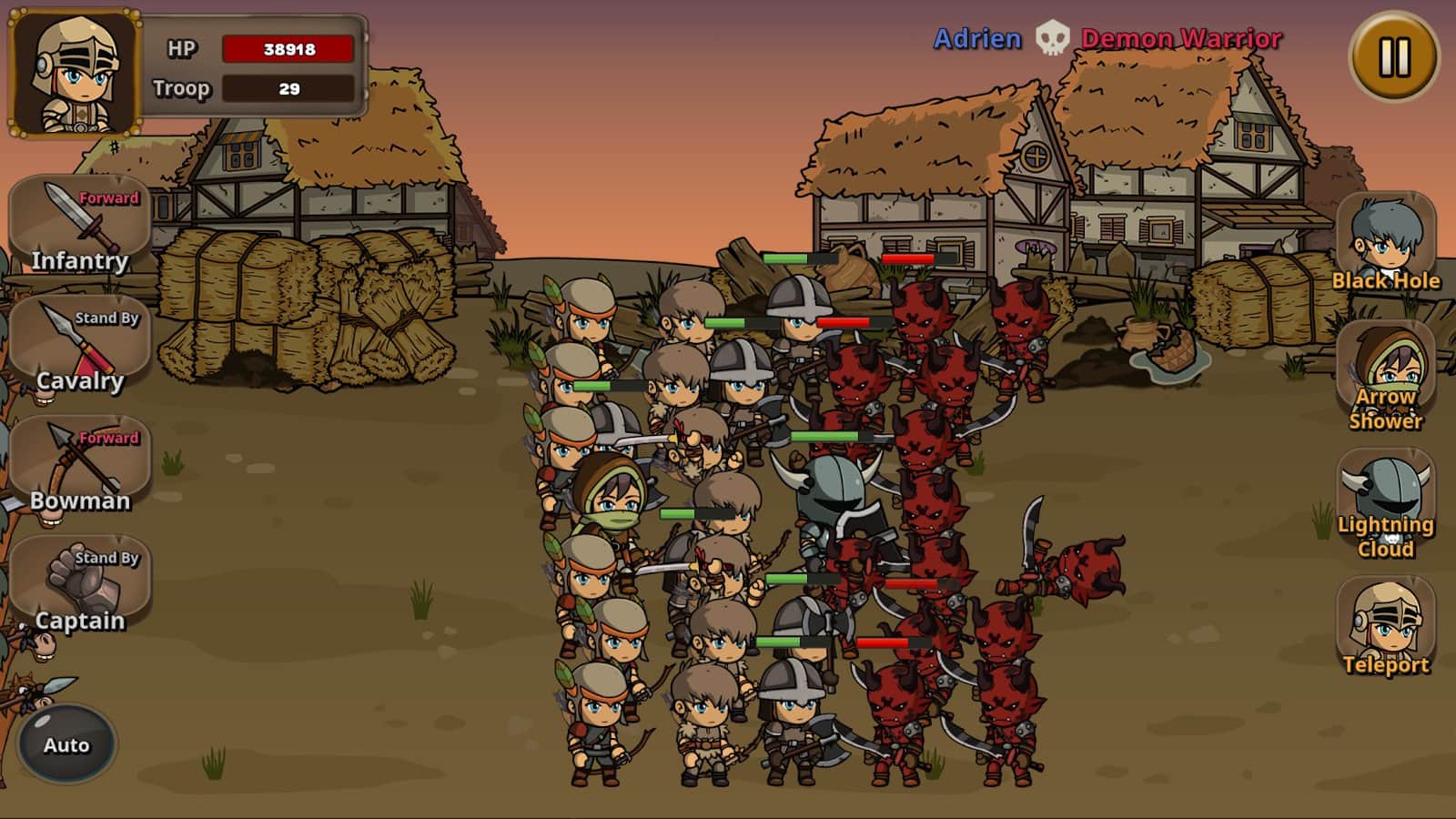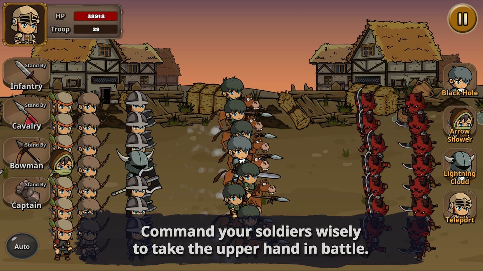 E-Rank Soldier - Take an active part in many battles against various monsters that dare to attack your territories! Become the commander of a mercenary squad, complete all tasks and events, strategically position your own warriors during battles, conquer the Skull Tower with the power of a single hero, and move between necessary buildings to do what you need. When venturing into the dark dungeon, make sure to thoroughly cleanse it from evil, as important items for you can be found there.