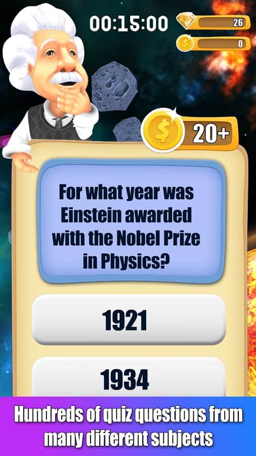 Albert Einstein German theoretical physicist, one of founders of modern theoretical physics. Einstein - puzzle game series is built in the form of quizzes in which you need to answer the questions passing level after level. Einstein™ brain trainer Quiz Runner - continuation of the series in which the developers decided to diversify the gameplay of the popular game implemented several solutions, such as for example runner. Now you have the opportunity not just to answer questions and solve puzzles, but also to travel around the world exploring the abandoned corners of the planet together with the famous scientist. The game creators have prepared hundreds of questions on categories such as geography, history, culture, technology and science and much more. Colorful graphics and full support for Russian language will help you cheerfully to spend time.