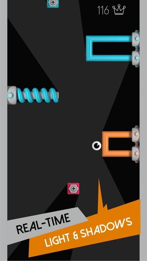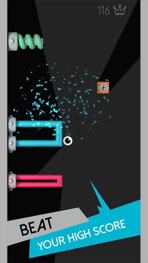 Electric Eye – a hardcore game for Android where you will operate electrically charged ball. In this game your ball moves between two metal plates which create an electric field, your task will be to switch the charges of the electric field to the ball to avoid collision with numerous obstacles. Tap the screen of your device and avoid collision with obstacles, which will be plenty. Show its excellent response and go as far as possible in this game, setting the record. Play with your friends and show record results.