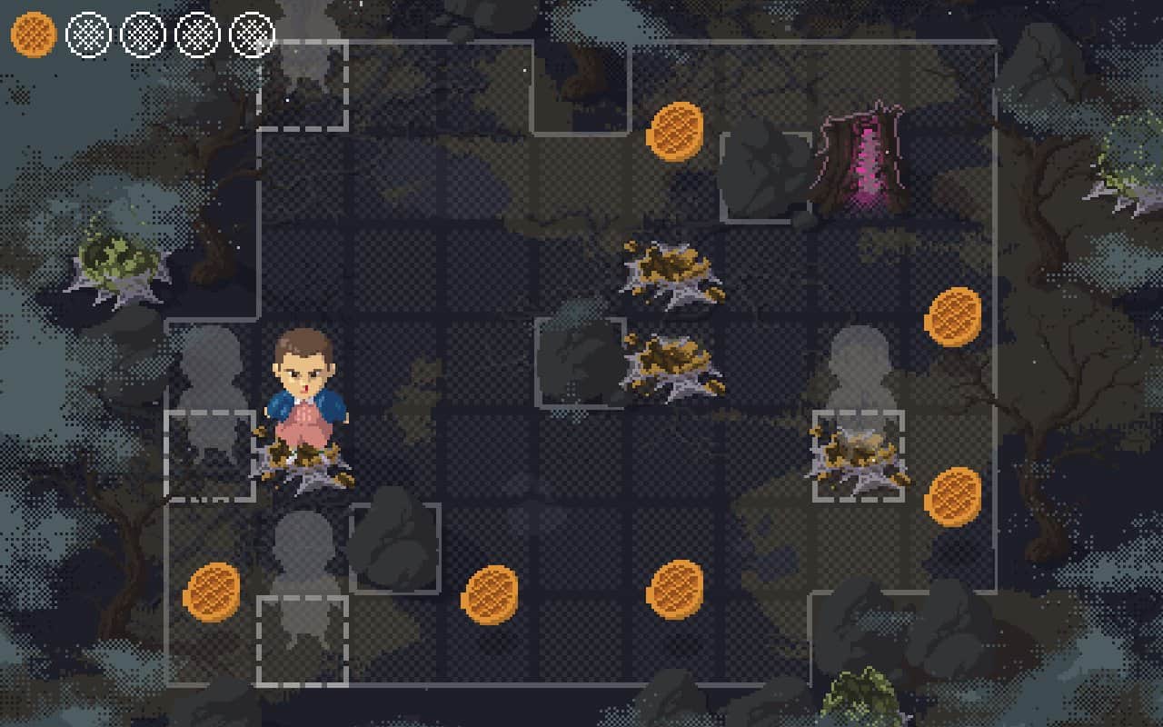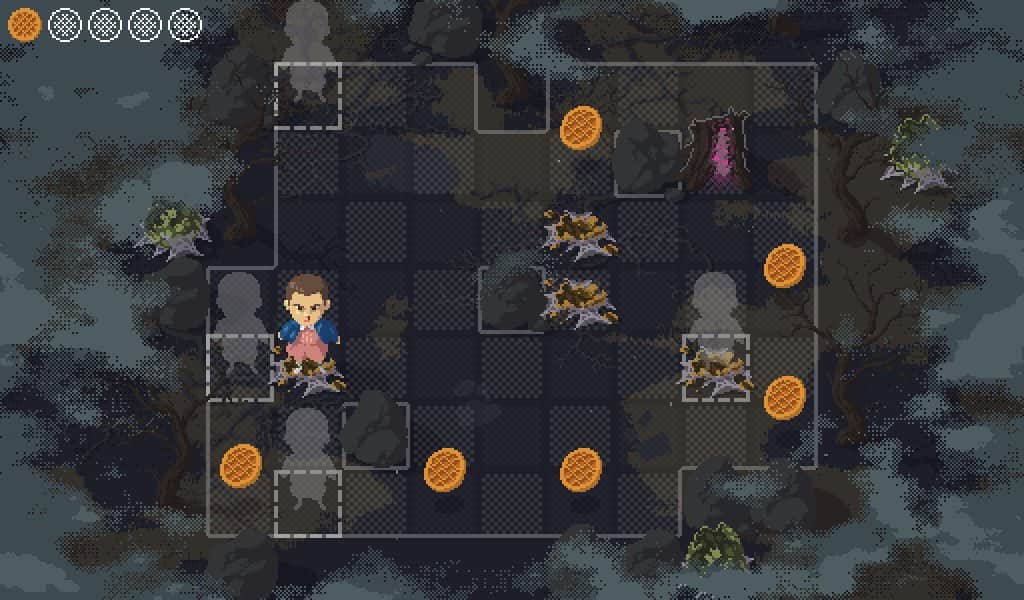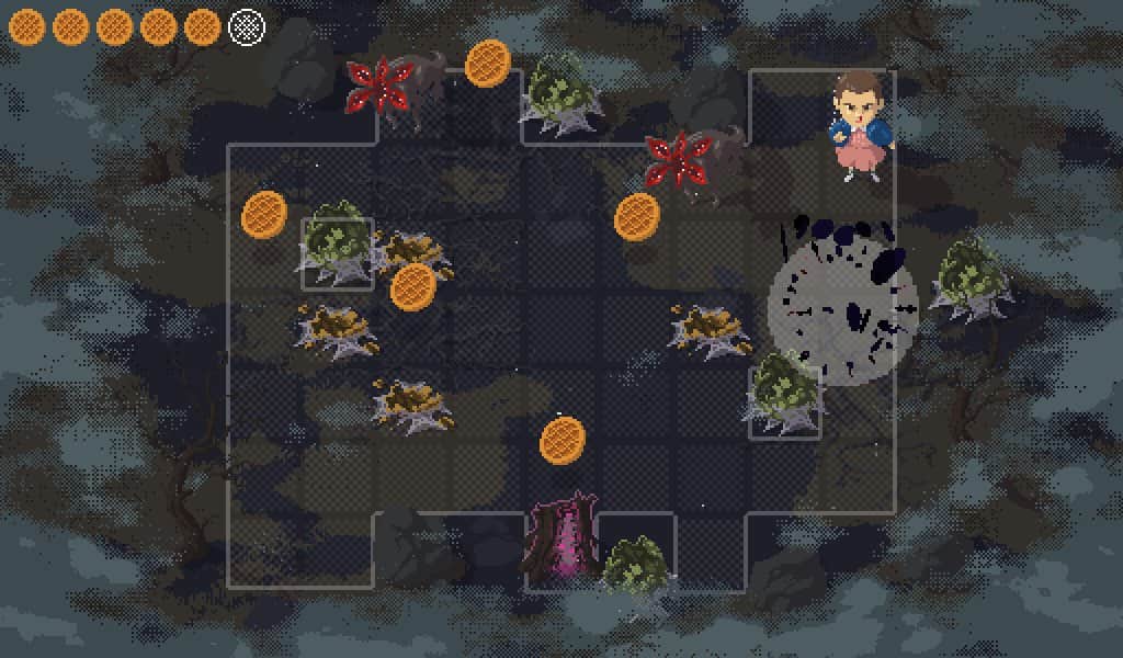 You watched 3 seasons of “Very strange things” and fell in love with him? Eleven - A tribute Stranger Things is a game for the fans and the memory of these wonderful, wonderful characters. The essence of the game is to play for the Eleven and to help her to move around the map to collect coins, escape from enemies or to attack them and go to a new level, going into the portal. But not on all tiles to walk you can click on those that you will be shown a silhouette of the main character. The game trains logic, speed of completion of the puzzles, building the right tactics. Try not to fall into traps or be eaten demo dogs.