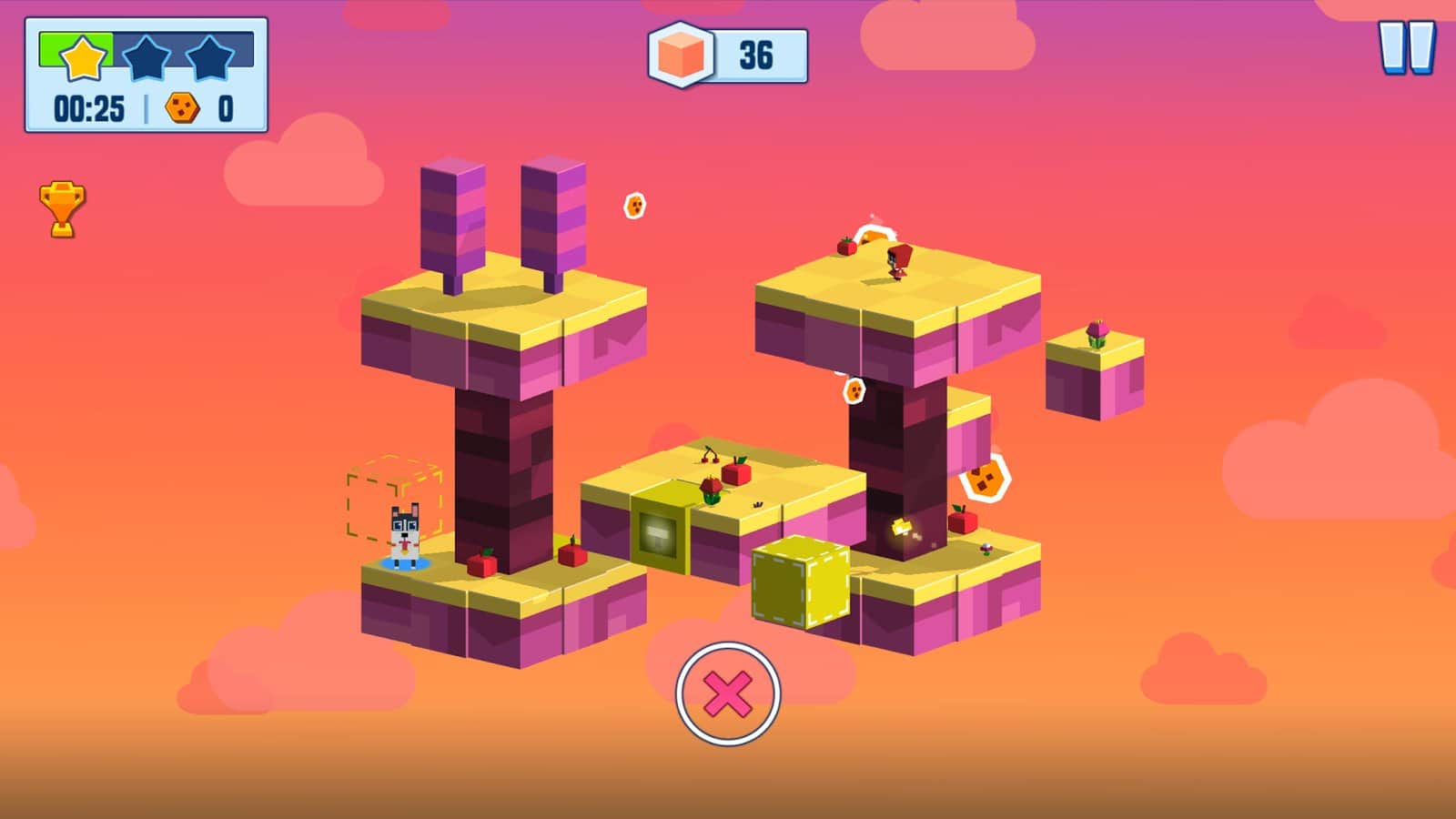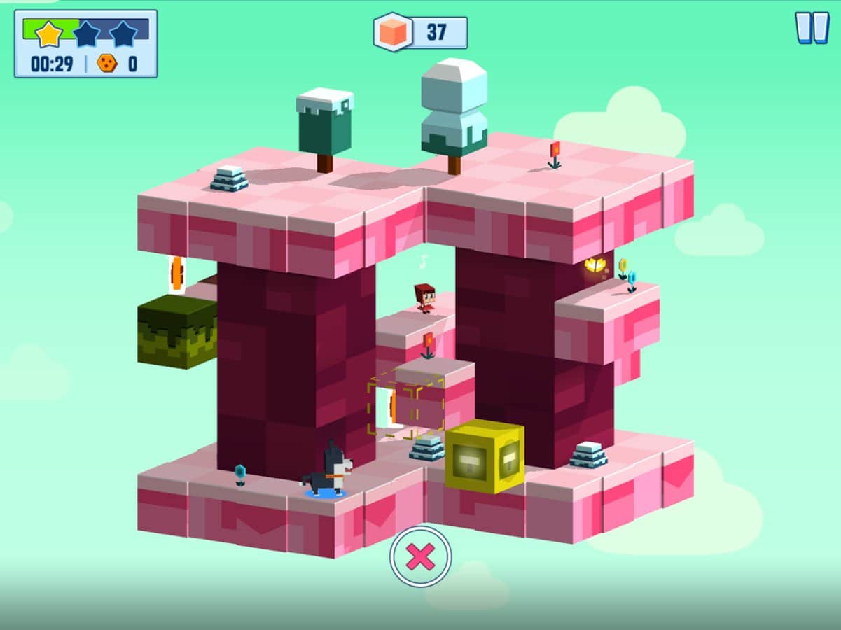 Ellie & Max - addictive puzzle game made in today's popular pixel - cubic style. The plot of the game tells us about adventures of a little curious girl named Ellie her loyal pet dog named Max. By chance, our heroes were in some kind of mysterious and strange world, a world which consists of different sites, platforms, cubes, and other geometric forms and now you have to help the characters to find a way home. the Uniqueness of the game is that the game mechanic combines 2D and 3D elements and allows you to turn the location in any direction thus creating a suitable way. While there is the possibility of use of various devices and devices located on the level.