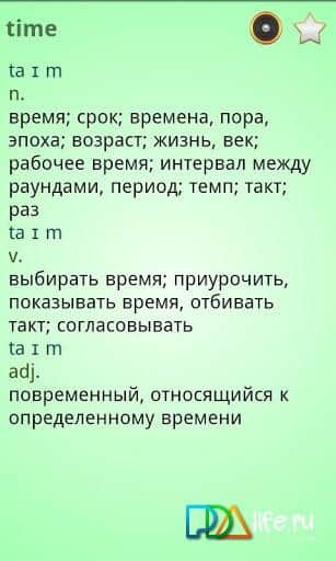 English - Russian and Russian - English Dictionary – easy to use dictionary for your Android device from the developer VP Development not requiring connection to the Internet and combining for 167000 articles on 32MB. Download, install and use on purpose any necessary moment.