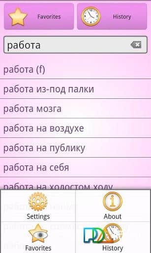 favorites – you can add words to favorites list by clicking the icon "asterisk”.
