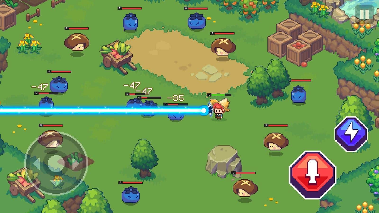 Epic Garden: Action RPG Games is a fascinating pixel action game for Android with an original idea. Players will defend local farmers who are being attacked by slugs, berries, vegetables and fruits, the blame for this is probably the use of harmful pesticides and GMOs. A variety of locations with different biomes are available in the game, where the player will control the farmer, protecting his farm from enemy attacks with laser weapons and superpowers. One of the advantages of the game is customizable RPG music, which will help create the atmosphere of the game in the style of The Legend of Zelda.