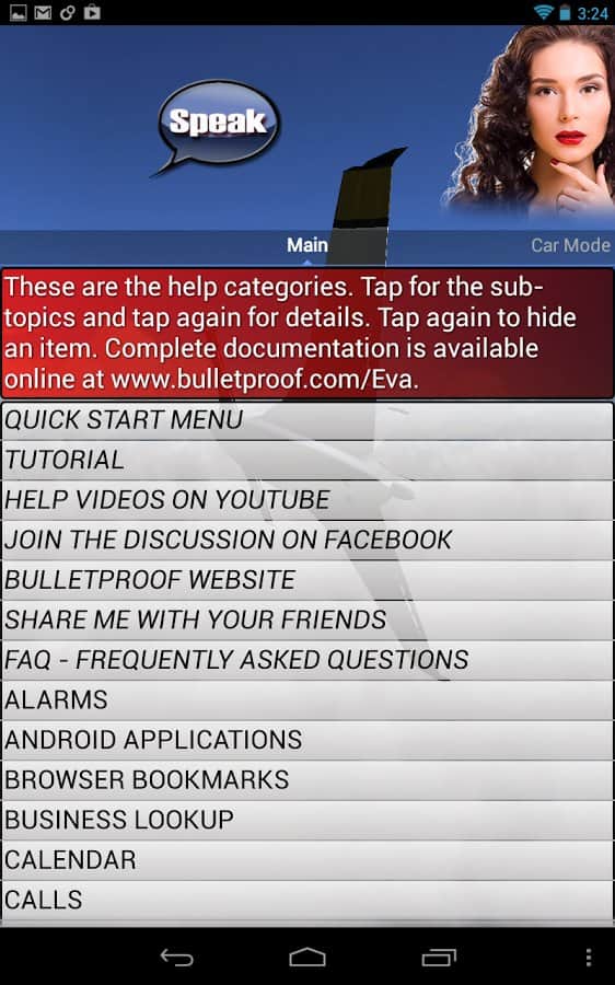 EVA – great virtual voice assistant for Android devices from the developer BulletProof, in the face of which you'll find a pleasant companion and assistant in many cases. If you like to work with a man than with a woman, you can choose the voice of Evan. Ask eve natural phrase "Write to max "what?", "eve that in my calendar for next week?" and so on. There is the possibility of training your virtual girlfriend recognition using Google's voice and after some time eve will be you to understand. Pleasant and fruitful cooperation with you EVA - Virtual Assistant !