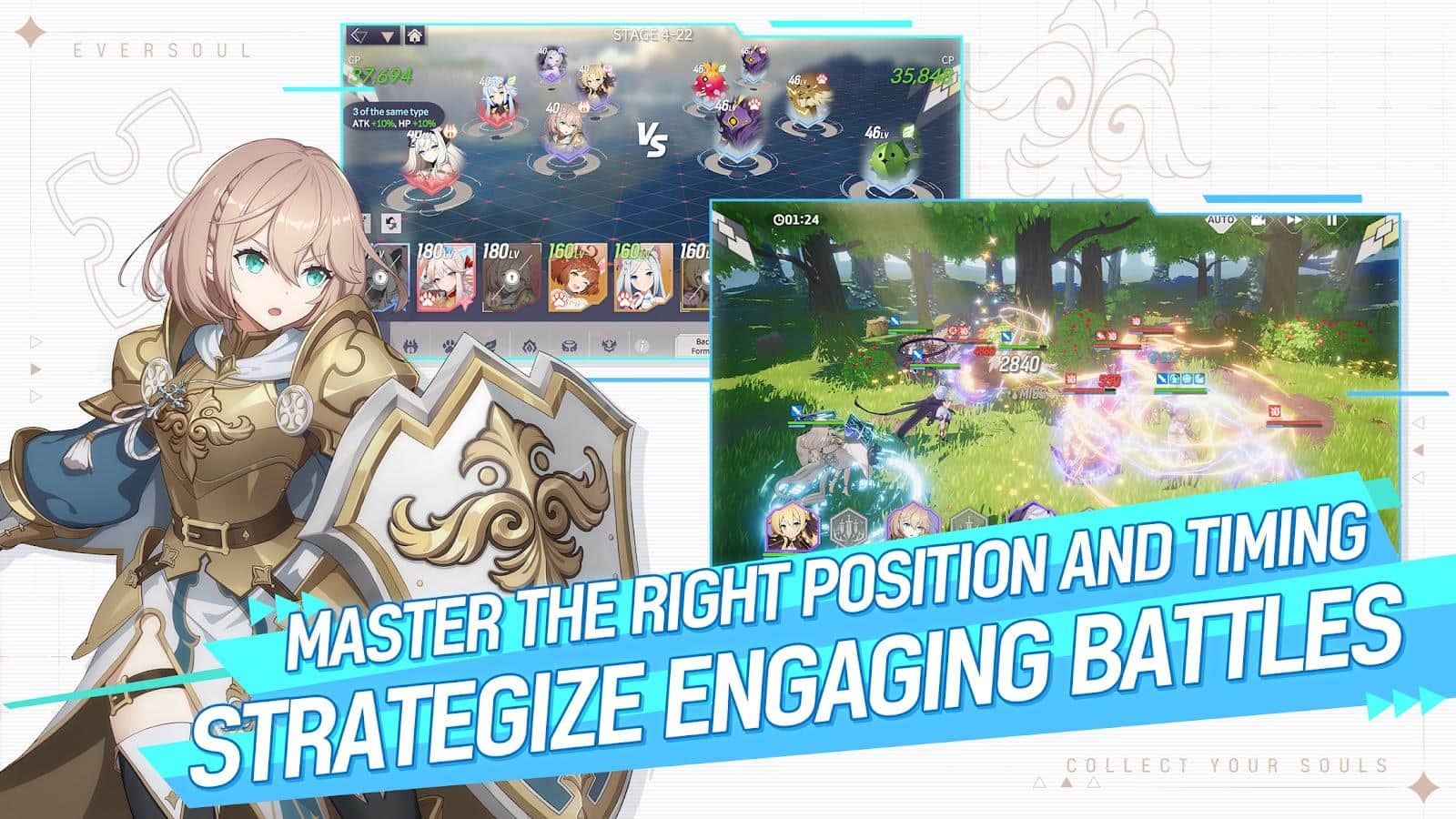 Eversoul - Each soul has a certain faction out of 6 available, and it can only be summoned in certain ways that depend on the same faction. Walking around the heavenly city, you will have the opportunity to interact with other souls and get closer to them, complete the missions you have received, fight strong monsters, strengthen squads and explore all formations to send squads to the battlefield, level up and thereby unlock access to exclusive stories. The Savior and a whole team of other souls must protect the world at the right moment!
