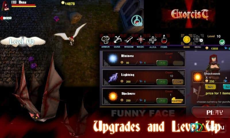 Exorcist-Fantasy Shooter game for Android in which we go on the level and kill different monsters, bloodthirsty plants and other detractors. The game is an action RPG with dynamic gameplay, tons of enemies and long-range weapon, magic is also available for you. In the game you are given 4 slots, one under the arms for further action, the second under any object, and the last two under the magic.