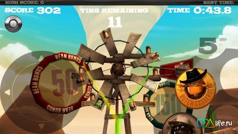 Far Tin Bandits - a fascinating shooting gallery in the setting of the Wild West. To start is to stay on the story line, as a result of unforeseen circumstances a few cans of beans fell into radioactive waste, which subjected them to mutation, finding the mind of our heroes, not only learned to walk, but has shown interest in the weapon. Finding weapons beans have become an exciting shooting competition. This project, unlike many others like him, will enable you not just to shoot at targets, each location is a work of art, with physical and mechanical puzzles, intricate constructions, complex constructions and just one shot could destroy all these design solutions. It is worth noting the excellent three-dimensional graphics in a cartoon style.