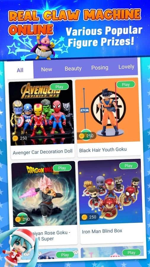 Figure Ooout: Claw Machine is a fun arcade game in which you can win real prizes, pulling anime figures and more. All familiar from childhood machines with an iron fist, which you need to pull the toy. Now this entertainment appeared in game format! Long-awaited innovations, such as high winning chances and free shipping make this game recommended to spend time with benefit and pleasure. Base countless prizes and weekly promotions are waiting for you!