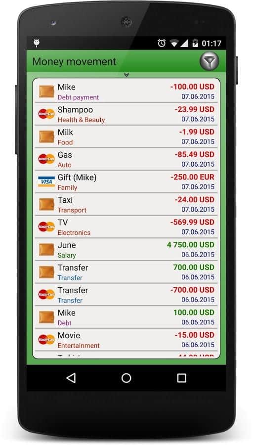 Finance Manager - Keep track of your finances and control them with the help of this simple app. User-friendly interface and the division into categories will help you navigate your finances, you will even be shown how you are paying, card or cash. The exact details of every financial operation, and automatic calculation and planning of expenses and profits for the future will help you manage the finances in General.