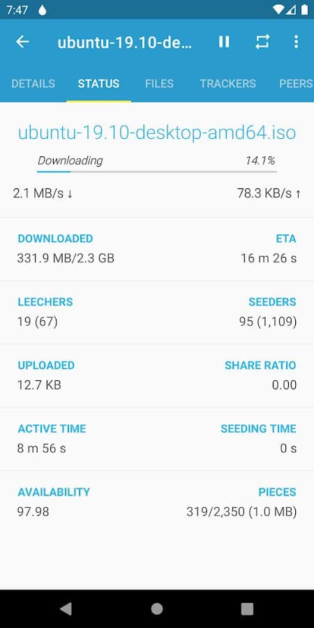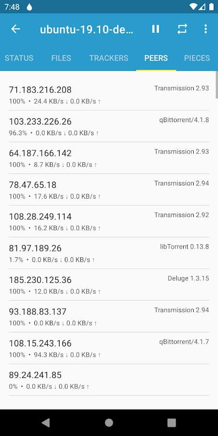 Flud - Torrent Client - View the exact state of the files you downloaded right now! Select certain files to download to your own smartphone, wait for them to load into the application, determine where you want to transfer them, and then distribute them to other phones. When you finish working with the files, you can move them to another directory or put them on an external disk for further use. In addition, you can always change the appearance of the application using themes: light, dark or light with a dark toolbar.