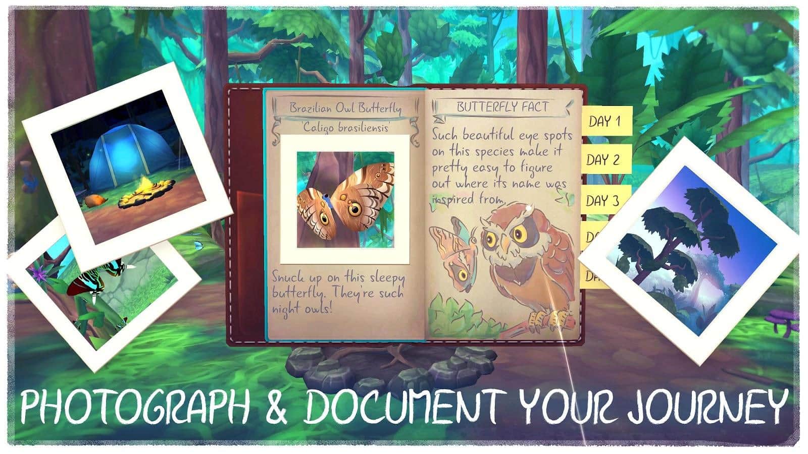 Flutter VR – immerse yourself in an amazing game world where you are transported into a tropical forest. Explore a vast and beautiful forest using virtual reality glasses, and enjoy the views and rare species of butterflies and animals. Your task as a researcher will look for new species of plants, animals and insects. Make notes in your journal and take photos of their findings. Ahead of you are five unique days and nights where you will spend in the rainforest that will delight you with a unique environment and weather conditions change. Relax and enjoy the beautiful nature and the realistic sounds of the tropics.