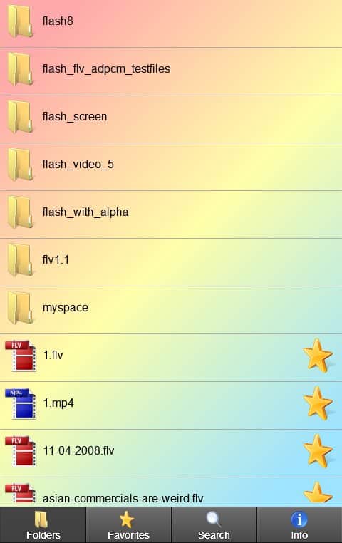 FLV HD MP4 Video Player – good fast and functional video player for Android from the developer Jess Development for playing all FLV including f4v .f4p, .f4a .f4b, and HD (if your device is powerful enough) and most of the MP4 files. The features of this app include: