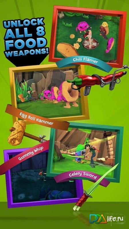 Food Battle: The Game - take part in epic battles with food. Food battle waiting for you, solve sweet puzzles and defeat deadly pastries. Even a harmless cookie can prove to be a deadly enemy. Go through different worlds, and tons of crazy levels and defeat the army of evil pink donut. Good graphics, interesting idea and addictive gameplay, will make you long to plunge into the world of sweet battles.