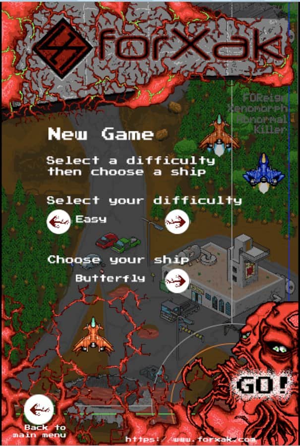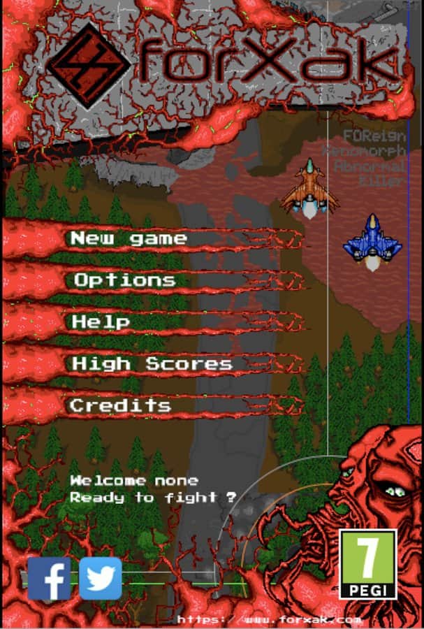 ForXak - Mad Skoll shooter in pixelart 2D. Protect yourself from the bloodthirsty monsters and armed ships. Make your way through clouds of bullets, and share your results with friends. Complete all 5 levels in spite of the wall of bullets that will pulverize your enemies, use 2 armed ship to defeat the army of monstrous creatures. Complete all the levels to defend against fierce monsters, defeat their army, move up the leaderboard and grab your achievements with your friends!