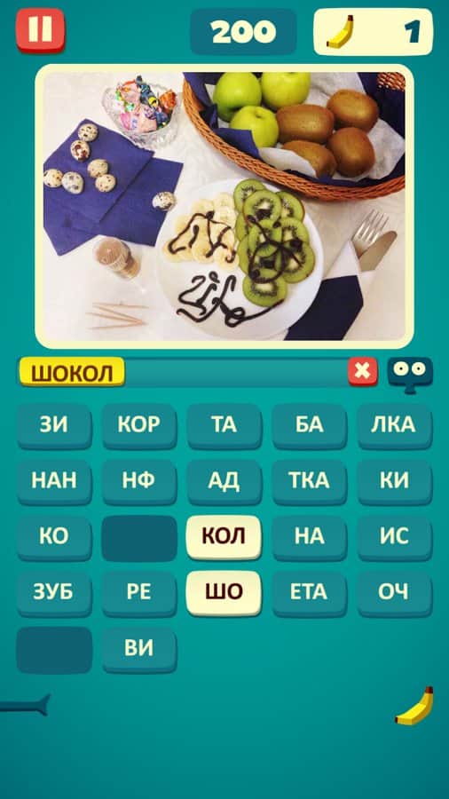 Fotoslon - find the words in the photo – an addictive puzzle game for Android where you will help the elephant to guess the word. This game will train your wits, attention and literacy. In this game you will see the picture, which depicts various items. Your task is to form words from the letters that will mean the objects located in the image. For correctly guessed words you will receive one banana and move on. If you find it difficult to give the correct answer, then click on the elephant and get a valuable clue, the beginning of the words. Play with friends and compete for the best scores in the game.