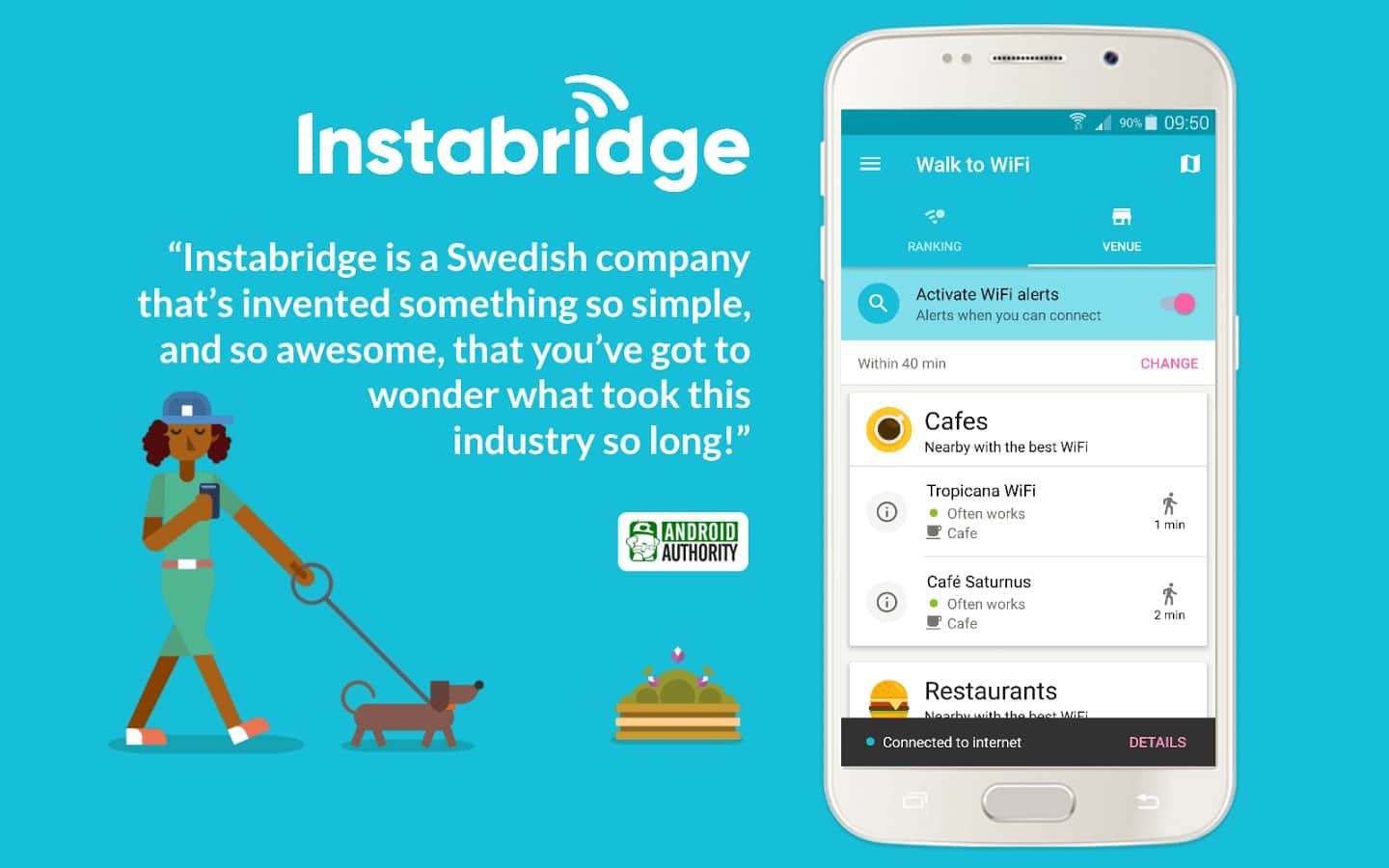 Free Wifi from Instabridge – an interesting program created by the developer Instabridge AB, which aims to provide you with access to thousands of WiFi hotspots with free Internet access around the world. Share all found points with your friends, as Instabridge allows you to store all passwords to public WiFi networks online.